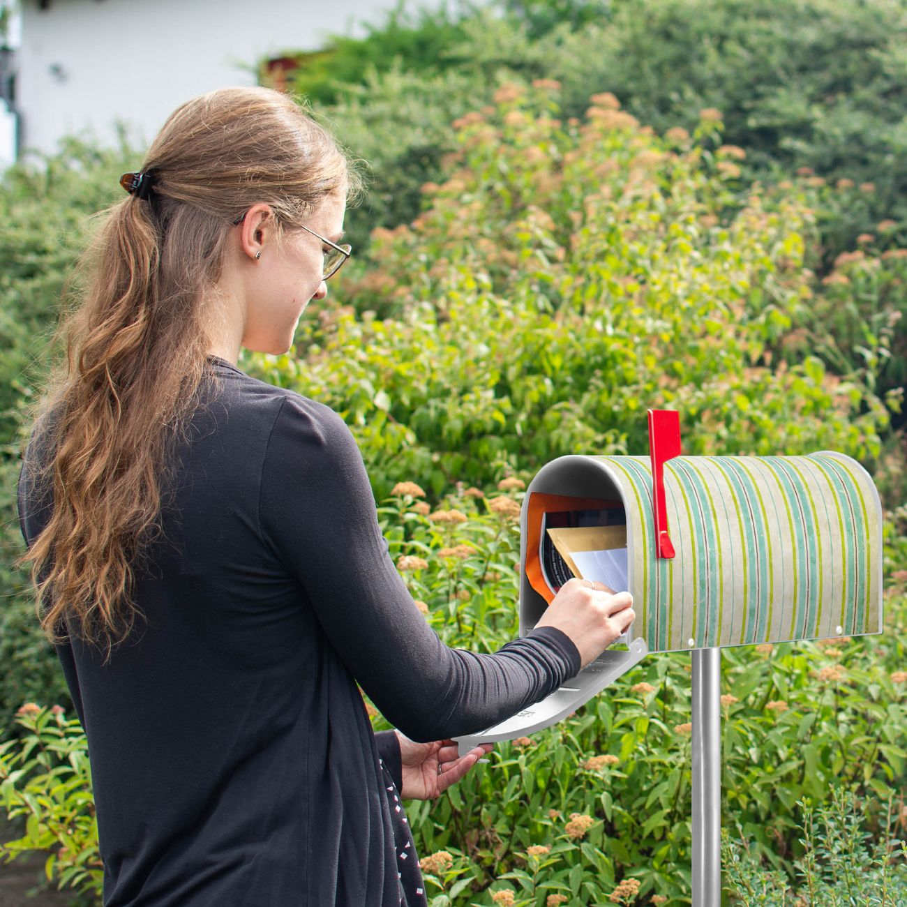 Unser amerikanischer Briefkasten mit dem Motiv Vintage Streifenmuster hat ein sehr ansprechendes und ausgefallenes Design, ist in der Grundfarbe weiß, grün oder schwarz erhältlich. Damit entlocken Sie Ihren Nachbarn und dem Postboten immer wieder ein Lächeln. Die Mailbox ist ein Original Import aus Mississippi USA und wird von unserer kleinen Manufaktur in Sachsen von Hand veredelt. Die US-Mailbox bietet ausreichend Platz auch für große Sendungen, eine Fahne die Ihnen Post anzeigt, wetterfestes und äußerst stabiles Material - so macht Post empfangen Freude.