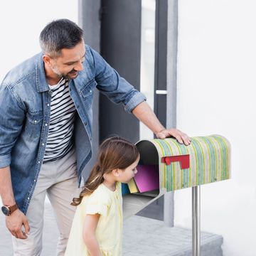 Der amerikanische Briefkasten von banjado mit Vintage Streifenmuster Motiv bietet Ihnen ausreichend Fassungsvermögen, um große A4 Sendungen und Zeitschriften zu empfangen. Die typisch amerikanische rote Fahne zeigt Ihnen an, wenn Sie Post erhalten haben. Die US-Mailbox besteht aus verzinktem Stahlblech welches lackiert wurde und ist 48 x 22 x 16 CM (BxHxT) groß. Die Folie mit Motiv Vintage Streifenmuster besteht aus einer wetter- und UV-resistenten Folie, die mit einem Schutzlaminat überzogen ist, sodass die US Mailbox zusätzlich vor Kratzern geschützt ist. An der Unterkante sind 4 Löcher je Seite um die Mailbox, typisch amerikanisch, an einem Holzpfahl oder einem Zaun zu befestigen. Auf Wunsch können Sie bei uns den passenden Standfuß oder die passende Wandhalterung kaufen um die US-Mailbox sicher zu befestigen. Wir bieten Ihnen ebenfalls Namensschilder, bereits beschriftet oder frei zu beschriften, und verschiedene selbst gestaltete Bitte-Keine-Werbung-Aufkleber.