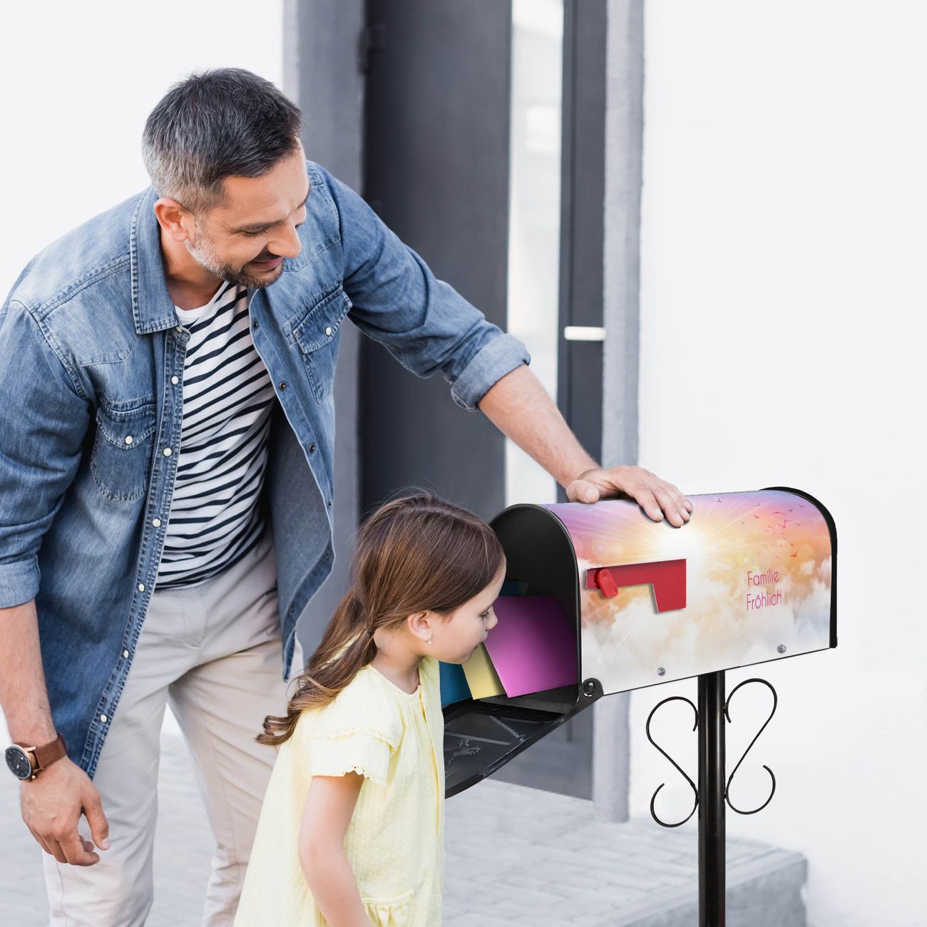 Unser amerikanischer Briefkasten mit dem Motiv Vögel am Himmel hat ein sehr ansprechendes und ausgefallenes Design, ist in der Grundfarbe weiß, grün oder schwarz erhältlich. Damit entlocken Sie Ihren Nachbarn und dem Postboten immer wieder ein Lächeln. Die Mailbox ist ein Original Import aus Mississippi USA und wird von unserer kleinen Manufaktur in Sachsen von Hand veredelt. Die US-Mailbox bietet ausreichend Platz auch für große Sendungen, eine Fahne die Ihnen Post anzeigt, wetterfestes und äußerst stabiles Material - so macht Post empfangen Freude.