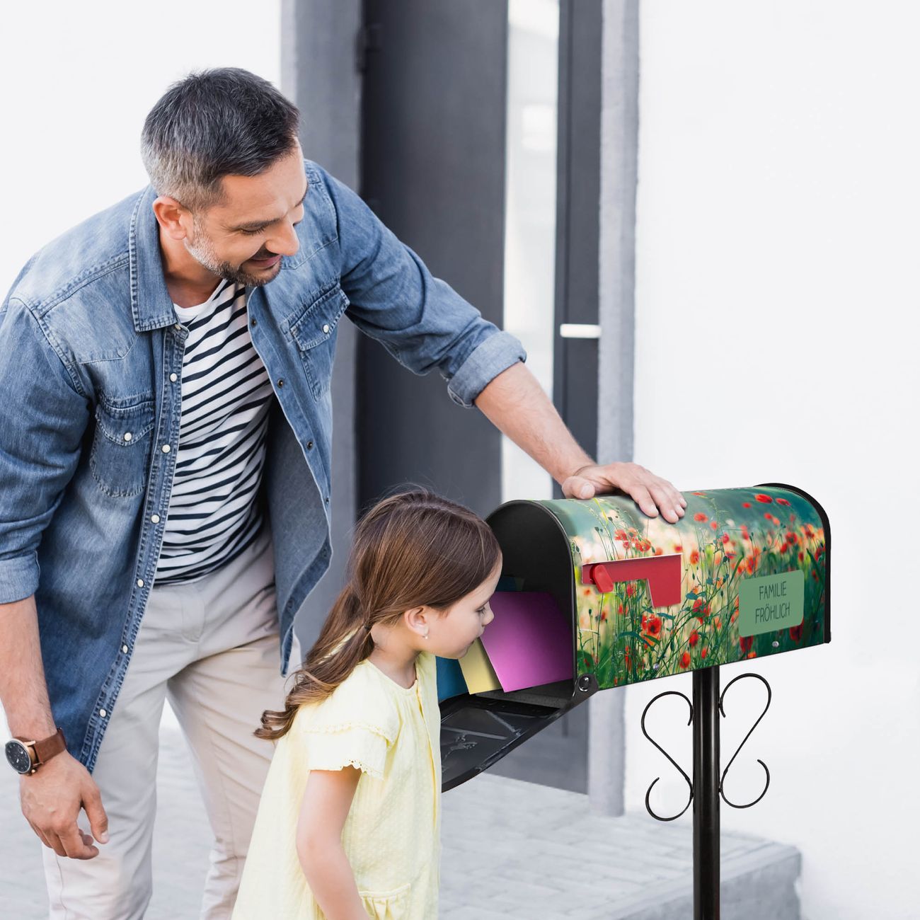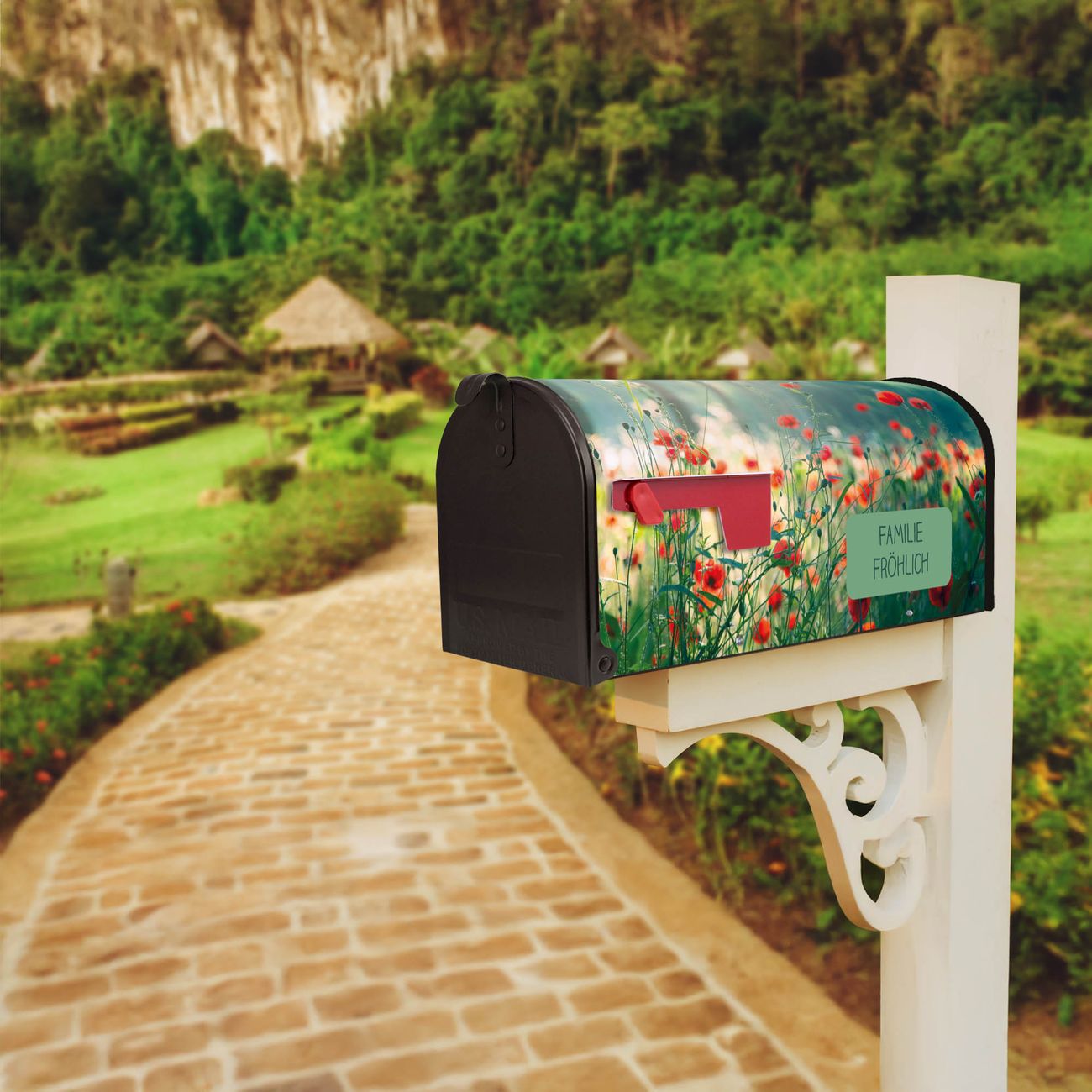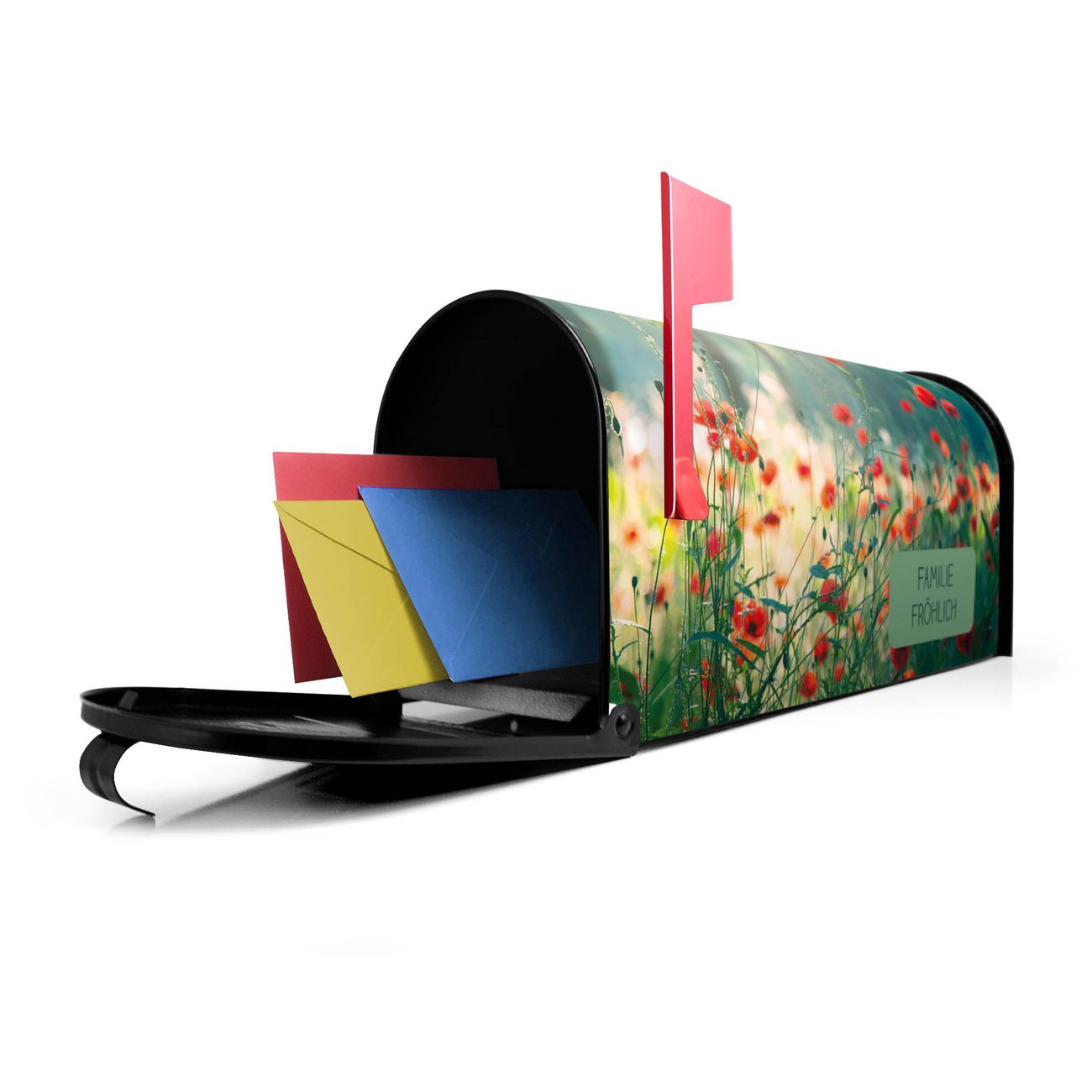 Unser amerikanischer Briefkasten mit dem Motiv Waldmohn hat ein sehr ansprechendes und ausgefallenes Design, ist in der Grundfarbe weiß, grün oder schwarz erhältlich. Damit entlocken Sie Ihren Nachbarn und dem Postboten immer wieder ein Lächeln. Die Mailbox ist ein Original Import aus Mississippi USA und wird von unserer kleinen Manufaktur in Sachsen von Hand veredelt. Die US-Mailbox bietet ausreichend Platz auch für große Sendungen, eine Fahne die Ihnen Post anzeigt, wetterfestes und äußerst stabiles Material - so macht Post empfangen Freude.