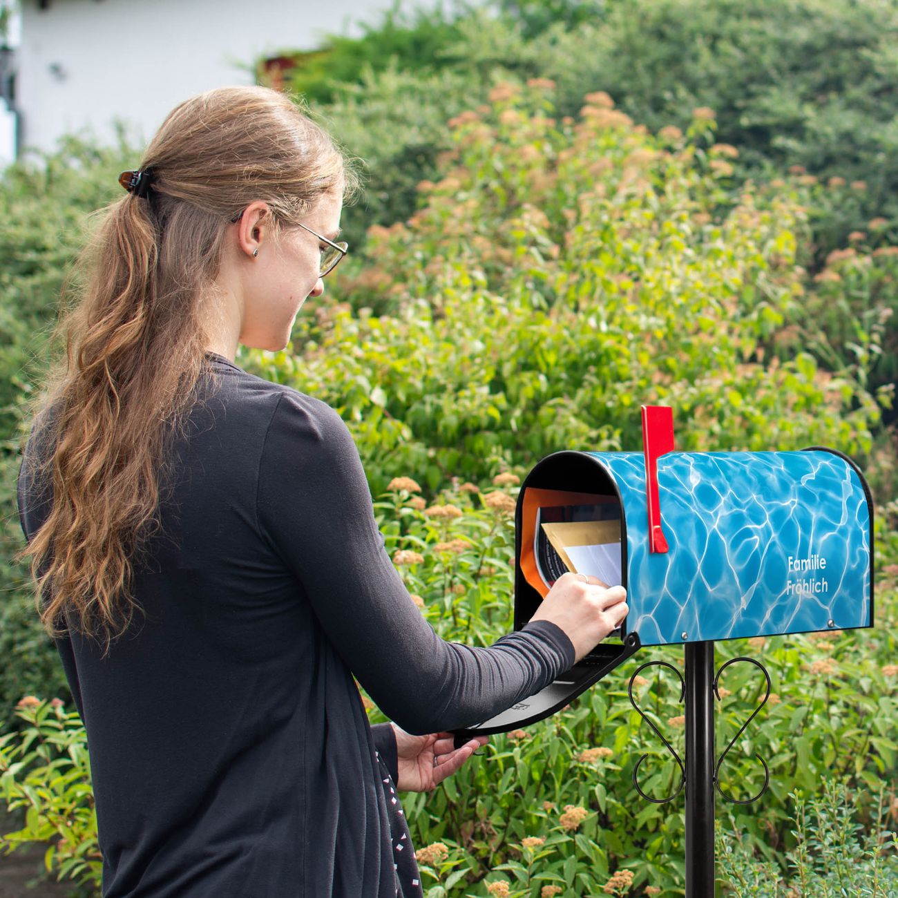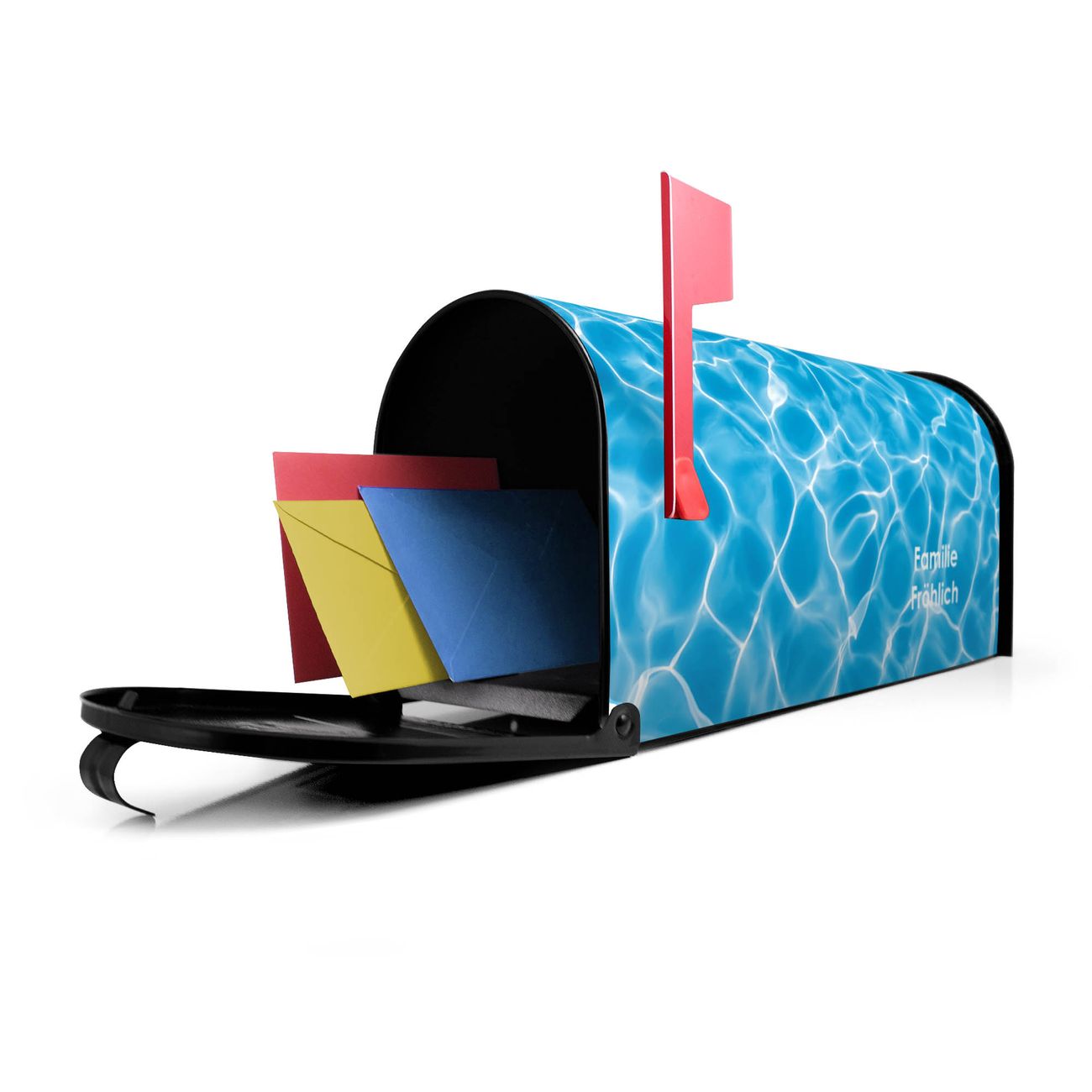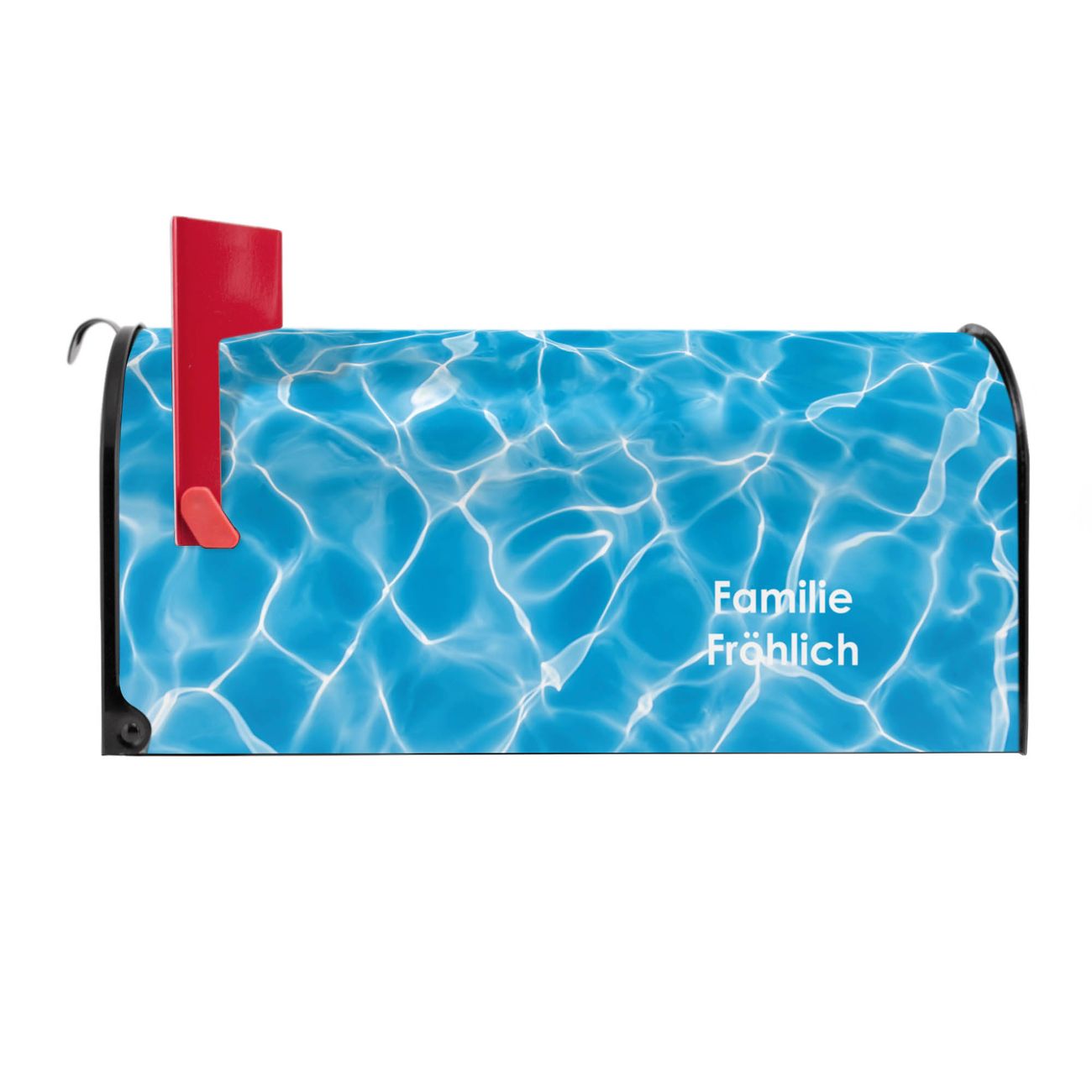 Unser amerikanischer Briefkasten mit dem Motiv Wasseroberfläche hat ein sehr ansprechendes und ausgefallenes Design, ist in der Grundfarbe weiß, grün oder schwarz erhältlich. Damit entlocken Sie Ihren Nachbarn und dem Postboten immer wieder ein Lächeln. Die Mailbox ist ein Original Import aus Mississippi USA und wird von unserer kleinen Manufaktur in Sachsen von Hand veredelt. Die US-Mailbox bietet ausreichend Platz auch für große Sendungen, eine Fahne die Ihnen Post anzeigt, wetterfestes und äußerst stabiles Material - so macht Post empfangen Freude.