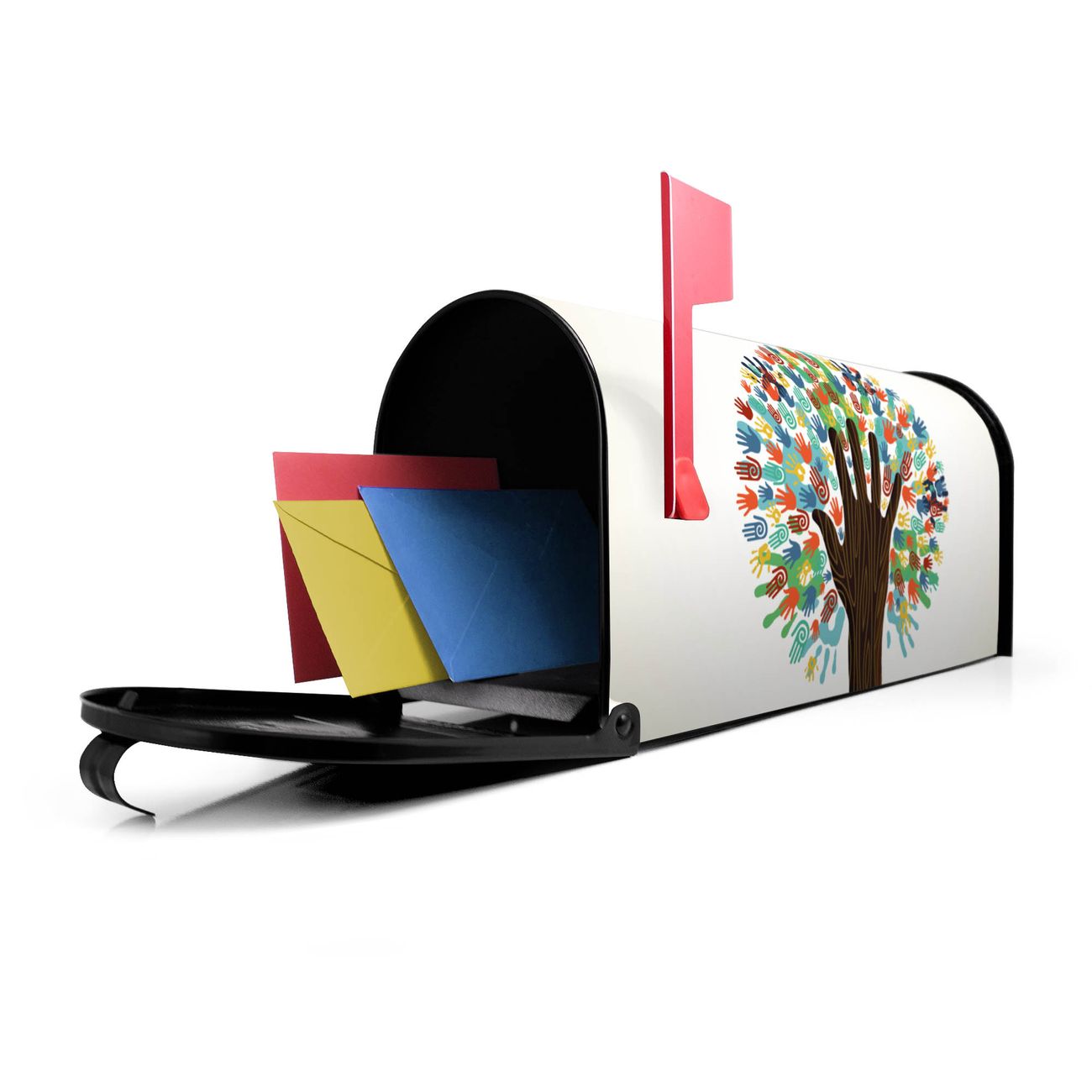 Unser amerikanischer Briefkasten mit dem Motiv We are the World hat ein sehr ansprechendes und ausgefallenes Design, ist in der Grundfarbe weiß, grün oder schwarz erhältlich. Damit entlocken Sie Ihren Nachbarn und dem Postboten immer wieder ein Lächeln. Die Mailbox ist ein Original Import aus Mississippi USA und wird von unserer kleinen Manufaktur in Sachsen von Hand veredelt. Die US-Mailbox bietet ausreichend Platz auch für große Sendungen, eine Fahne die Ihnen Post anzeigt, wetterfestes und äußerst stabiles Material - so macht Post empfangen Freude.