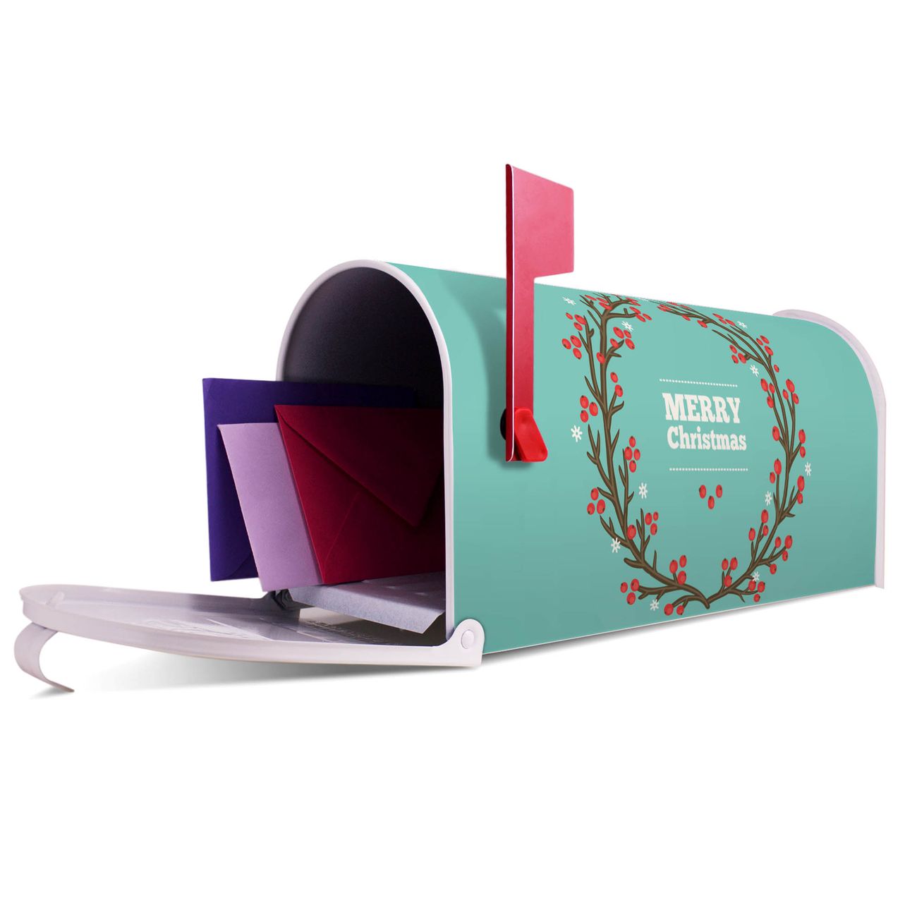 Unser amerikanischer Briefkasten mit dem Motiv Weihnachtsranke hat ein sehr ansprechendes und ausgefallenes Design, ist in der Grundfarbe weiß, grün oder schwarz erhältlich. Damit entlocken Sie Ihren Nachbarn und dem Postboten immer wieder ein Lächeln. Die Mailbox ist ein Original Import aus Mississippi USA und wird von unserer kleinen Manufaktur in Sachsen von Hand veredelt. Die US-Mailbox bietet ausreichend Platz auch für große Sendungen, eine Fahne die Ihnen Post anzeigt, wetterfestes und äußerst stabiles Material - so macht Post empfangen Freude.