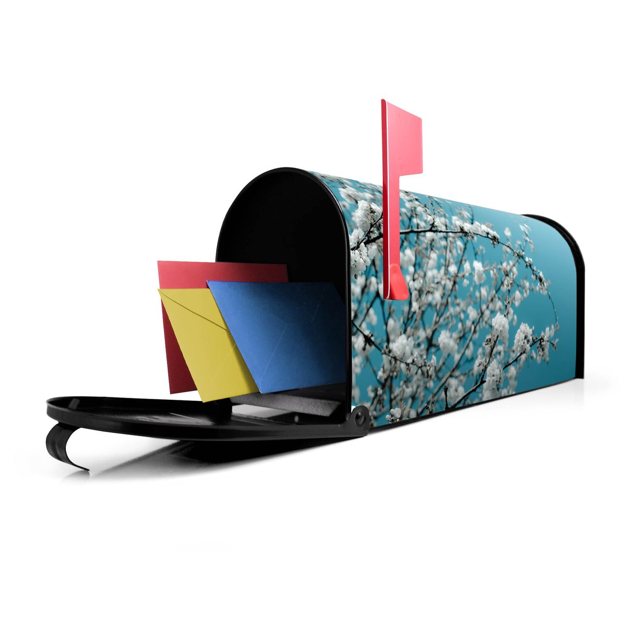 Unser amerikanischer Briefkasten mit dem Motiv weiße Kirschblüten hat ein sehr ansprechendes und ausgefallenes Design, ist in der Grundfarbe weiß, grün oder schwarz erhältlich. Damit entlocken Sie Ihren Nachbarn und dem Postboten immer wieder ein Lächeln. Die Mailbox ist ein Original Import aus Mississippi USA und wird von unserer kleinen Manufaktur in Sachsen von Hand veredelt. Die US-Mailbox bietet ausreichend Platz auch für große Sendungen, eine Fahne die Ihnen Post anzeigt, wetterfestes und äußerst stabiles Material - so macht Post empfangen Freude.