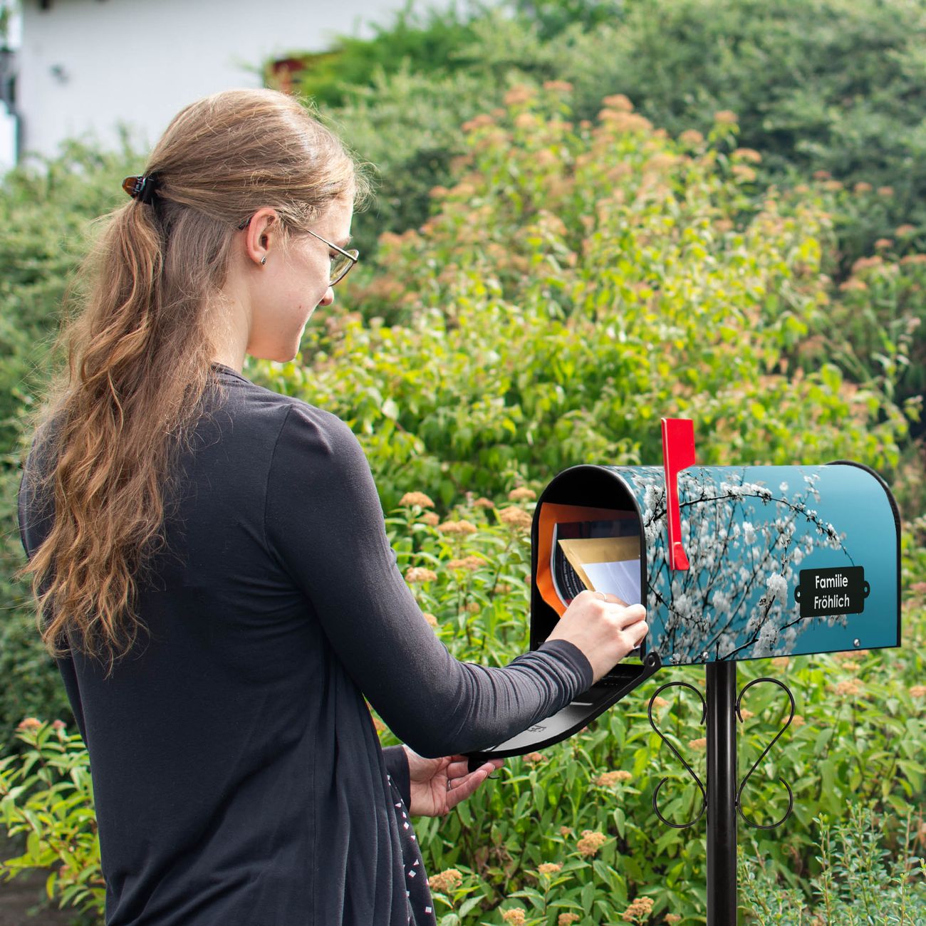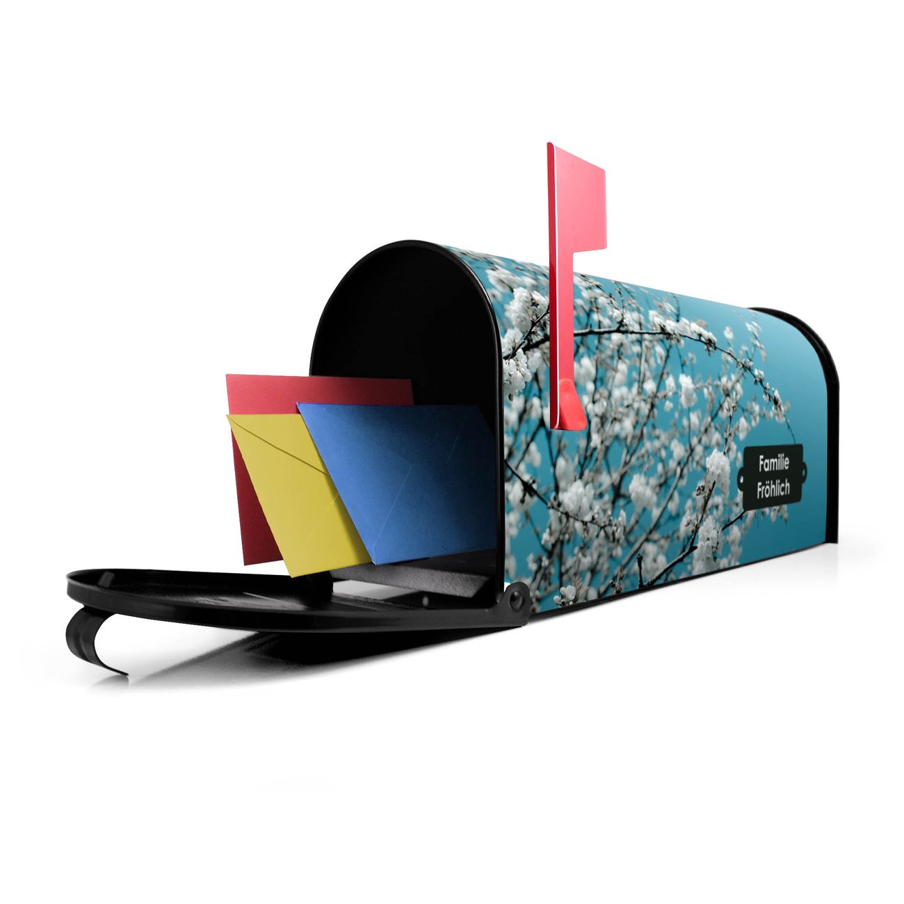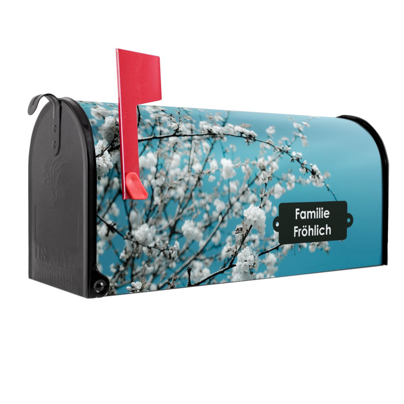 Unser amerikanischer Briefkasten mit dem Motiv weiße Kirschblüten hat ein sehr ansprechendes und ausgefallenes Design, ist in der Grundfarbe weiß, grün oder schwarz erhältlich. Damit entlocken Sie Ihren Nachbarn und dem Postboten immer wieder ein Lächeln. Die Mailbox ist ein Original Import aus Mississippi USA und wird von unserer kleinen Manufaktur in Sachsen von Hand veredelt. Die US-Mailbox bietet ausreichend Platz auch für große Sendungen, eine Fahne die Ihnen Post anzeigt, wetterfestes und äußerst stabiles Material - so macht Post empfangen Freude.