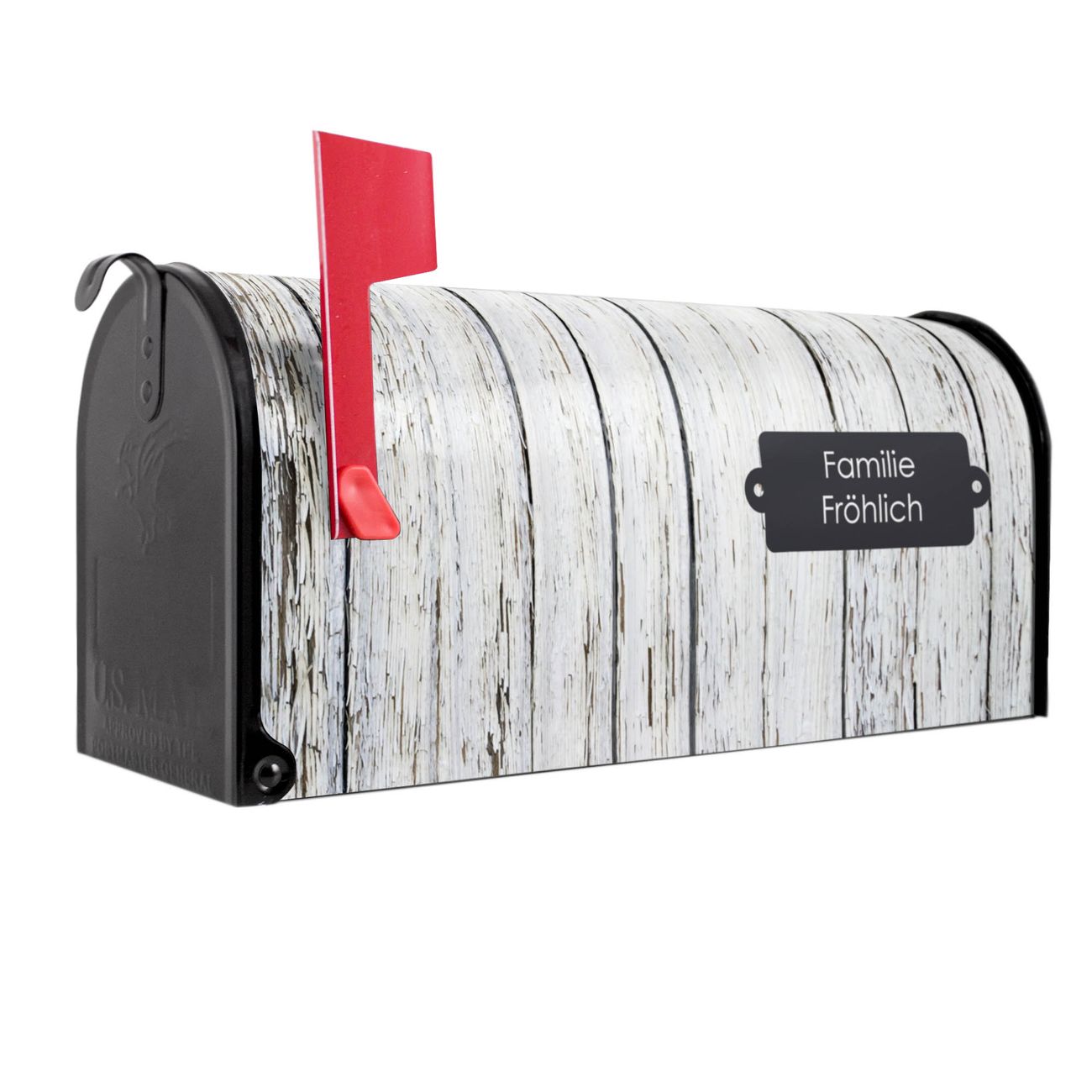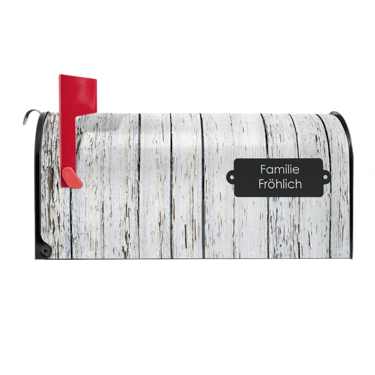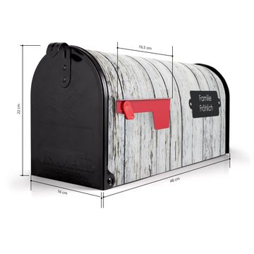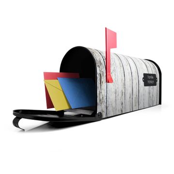 Der amerikanische Briefkasten von banjado mit Weißer Bretterzaun Motiv bietet Ihnen ausreichend Fassungsvermögen, um große A4 Sendungen und Zeitschriften zu empfangen. Die typisch amerikanische rote Fahne zeigt Ihnen an, wenn Sie Post erhalten haben. Die US-Mailbox besteht aus verzinktem Stahlblech welches lackiert wurde und ist 48 x 22 x 16 CM (BxHxT) groß. Die Folie mit Motiv Weißer Bretterzaun besteht aus einer wetter- und UV-resistenten Folie, die mit einem Schutzlaminat überzogen ist, sodass die US Mailbox zusätzlich vor Kratzern geschützt ist. An der Unterkante sind 4 Löcher je Seite um die Mailbox, typisch amerikanisch, an einem Holzpfahl oder einem Zaun zu befestigen. Auf Wunsch können Sie bei uns den passenden Standfuß oder die passende Wandhalterung kaufen um die US-Mailbox sicher zu befestigen. Wir bieten Ihnen ebenfalls Namensschilder, bereits beschriftet oder frei zu beschriften, und verschiedene selbst gestaltete Bitte-Keine-Werbung-Aufkleber.