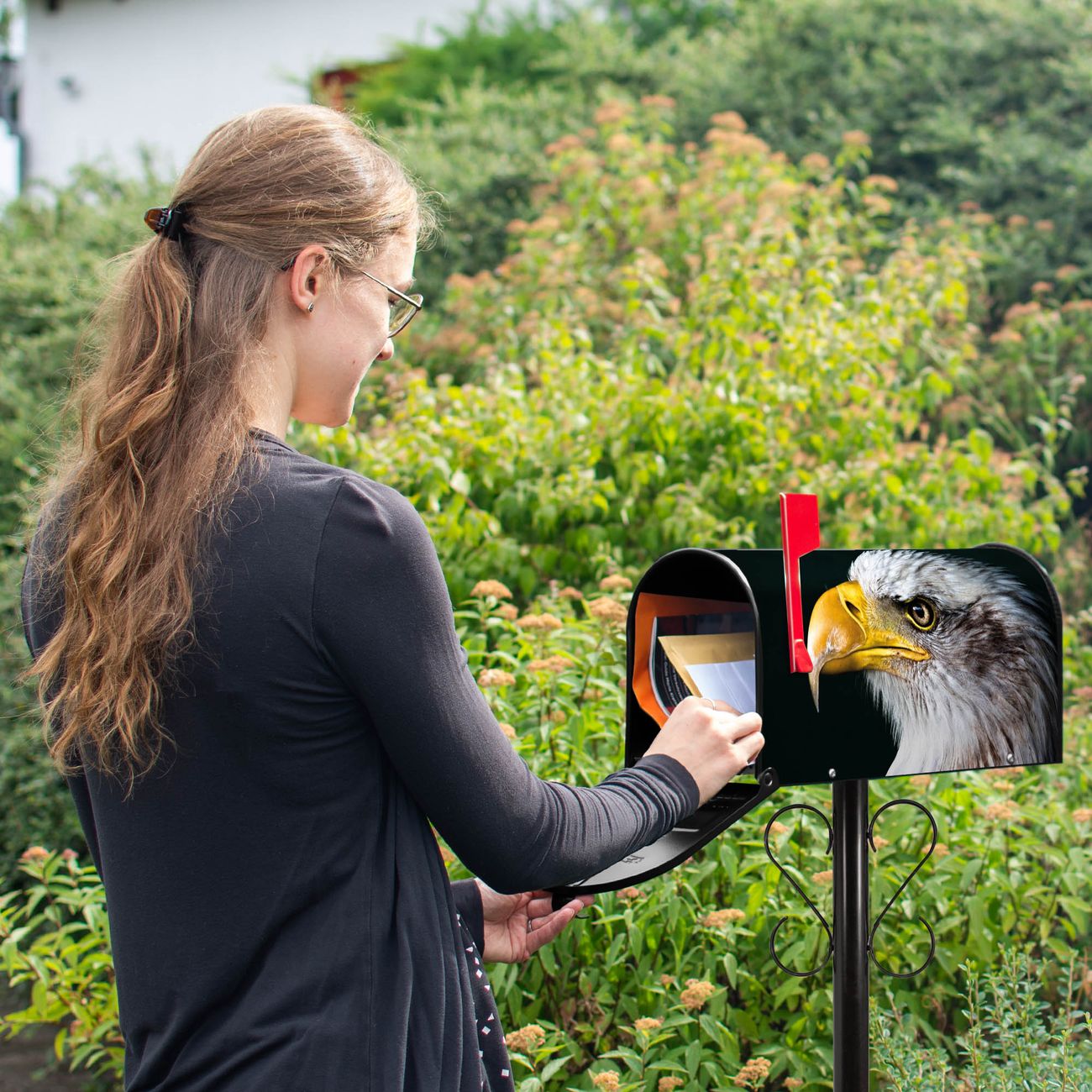 Unser amerikanischer Briefkasten mit dem Motiv Weißkopfseeadler hat ein sehr ansprechendes und ausgefallenes Design, ist in der Grundfarbe weiß, grün oder schwarz erhältlich. Damit entlocken Sie Ihren Nachbarn und dem Postboten immer wieder ein Lächeln. Die Mailbox ist ein Original Import aus Mississippi USA und wird von unserer kleinen Manufaktur in Sachsen von Hand veredelt. Die US-Mailbox bietet ausreichend Platz auch für große Sendungen, eine Fahne die Ihnen Post anzeigt, wetterfestes und äußerst stabiles Material - so macht Post empfangen Freude.