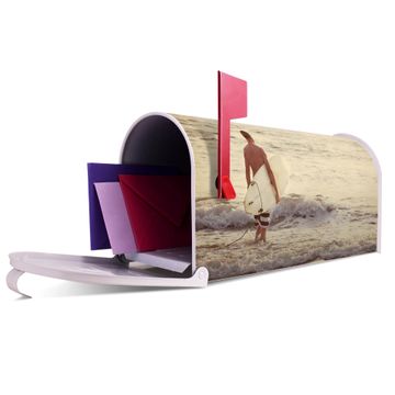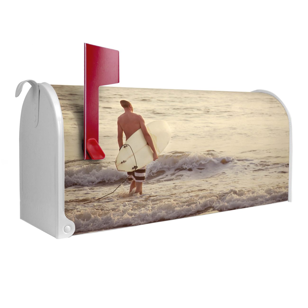 Unser amerikanischer Briefkasten mit dem Motiv Wellenreiten Gehen 2 hat ein sehr ansprechendes und ausgefallenes Design, ist in der Grundfarbe weiß, grün oder schwarz erhältlich. Damit entlocken Sie Ihren Nachbarn und dem Postboten immer wieder ein Lächeln. Die Mailbox ist ein Original Import aus Mississippi USA und wird von unserer kleinen Manufaktur in Sachsen von Hand veredelt. Die US-Mailbox bietet ausreichend Platz auch für große Sendungen, eine Fahne die Ihnen Post anzeigt, wetterfestes und äußerst stabiles Material - so macht Post empfangen Freude.