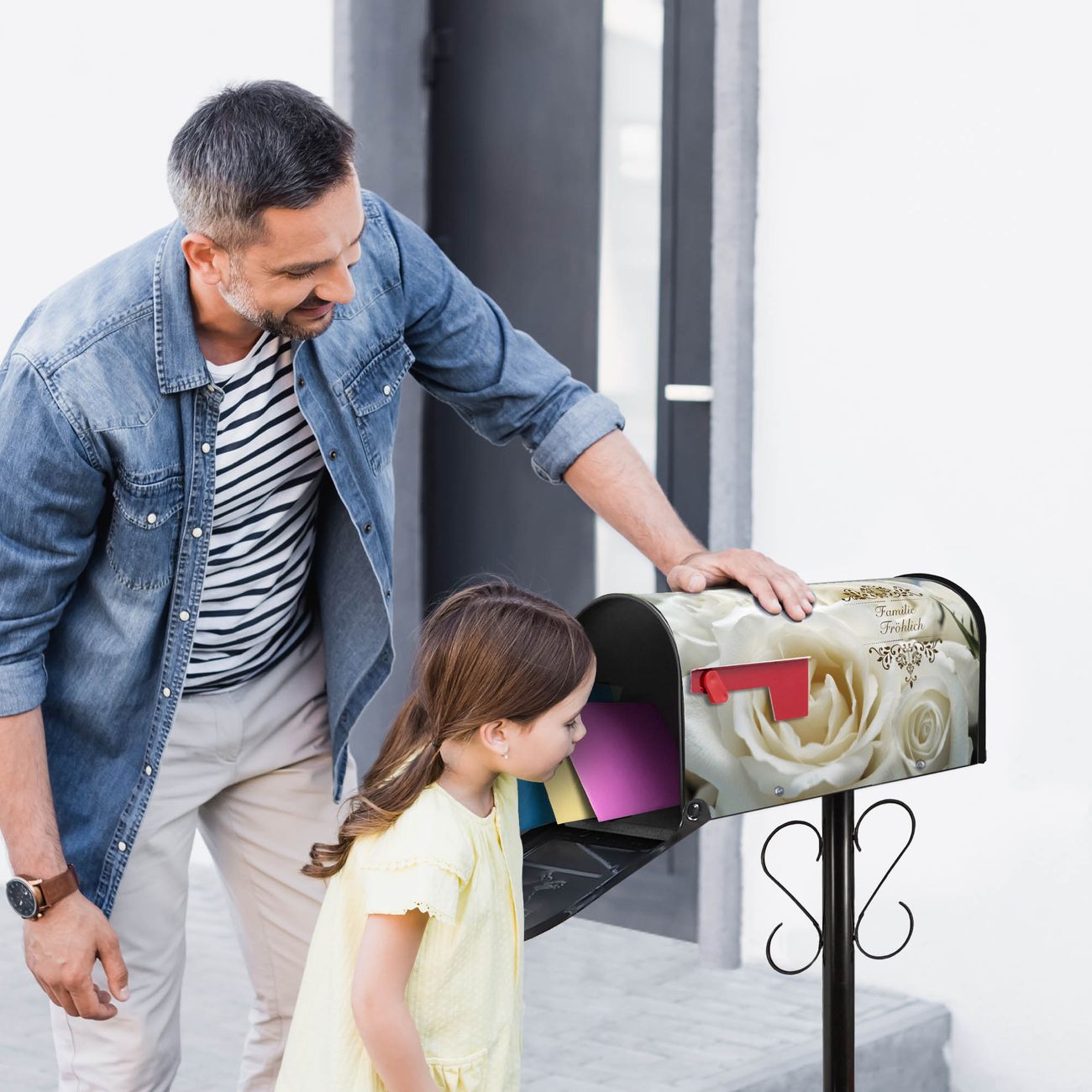Unser amerikanischer Briefkasten mit dem Motiv White Roses hat ein sehr ansprechendes und ausgefallenes Design, ist in der Grundfarbe weiß, grün oder schwarz erhältlich. Damit entlocken Sie Ihren Nachbarn und dem Postboten immer wieder ein Lächeln. Die Mailbox ist ein Original Import aus Mississippi USA und wird von unserer kleinen Manufaktur in Sachsen von Hand veredelt. Die US-Mailbox bietet ausreichend Platz auch für große Sendungen, eine Fahne die Ihnen Post anzeigt, wetterfestes und äußerst stabiles Material - so macht Post empfangen Freude.