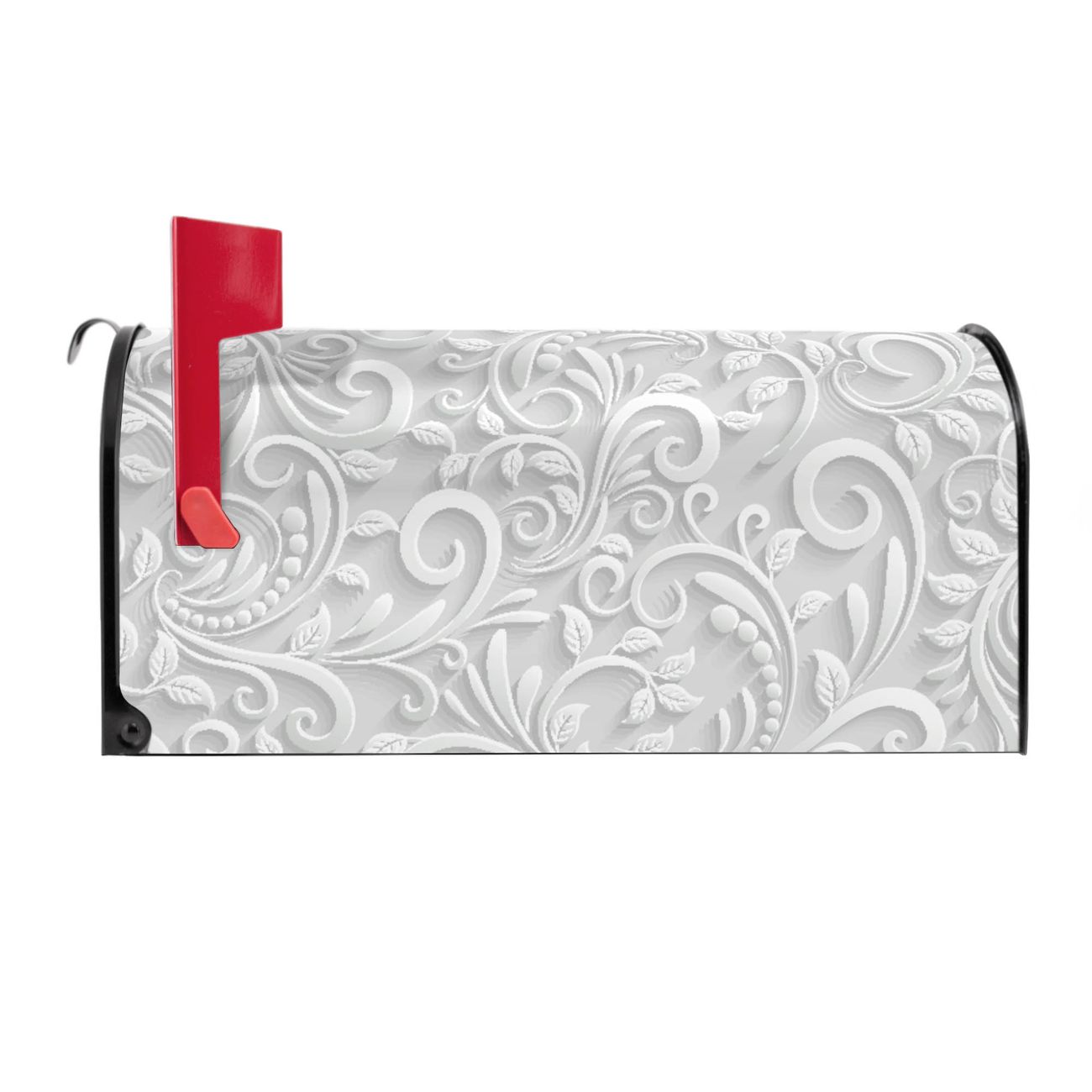 Der amerikanische Briefkasten von banjado mit White Swirl Motiv bietet Ihnen ausreichend Fassungsvermögen, um große A4 Sendungen und Zeitschriften zu empfangen. Die typisch amerikanische rote Fahne zeigt Ihnen an, wenn Sie Post erhalten haben. Die US-Mailbox besteht aus verzinktem Stahlblech welches lackiert wurde und ist 48 x 22 x 16 CM (BxHxT) groß. Die Folie mit Motiv White Swirl besteht aus einer wetter- und UV-resistenten Folie, die mit einem Schutzlaminat überzogen ist, sodass die US Mailbox zusätzlich vor Kratzern geschützt ist. An der Unterkante sind 4 Löcher je Seite um die Mailbox, typisch amerikanisch, an einem Holzpfahl oder einem Zaun zu befestigen. Auf Wunsch können Sie bei uns den passenden Standfuß oder die passende Wandhalterung kaufen um die US-Mailbox sicher zu befestigen. Wir bieten Ihnen ebenfalls Namensschilder, bereits beschriftet oder frei zu beschriften, und verschiedene selbst gestaltete Bitte-Keine-Werbung-Aufkleber.