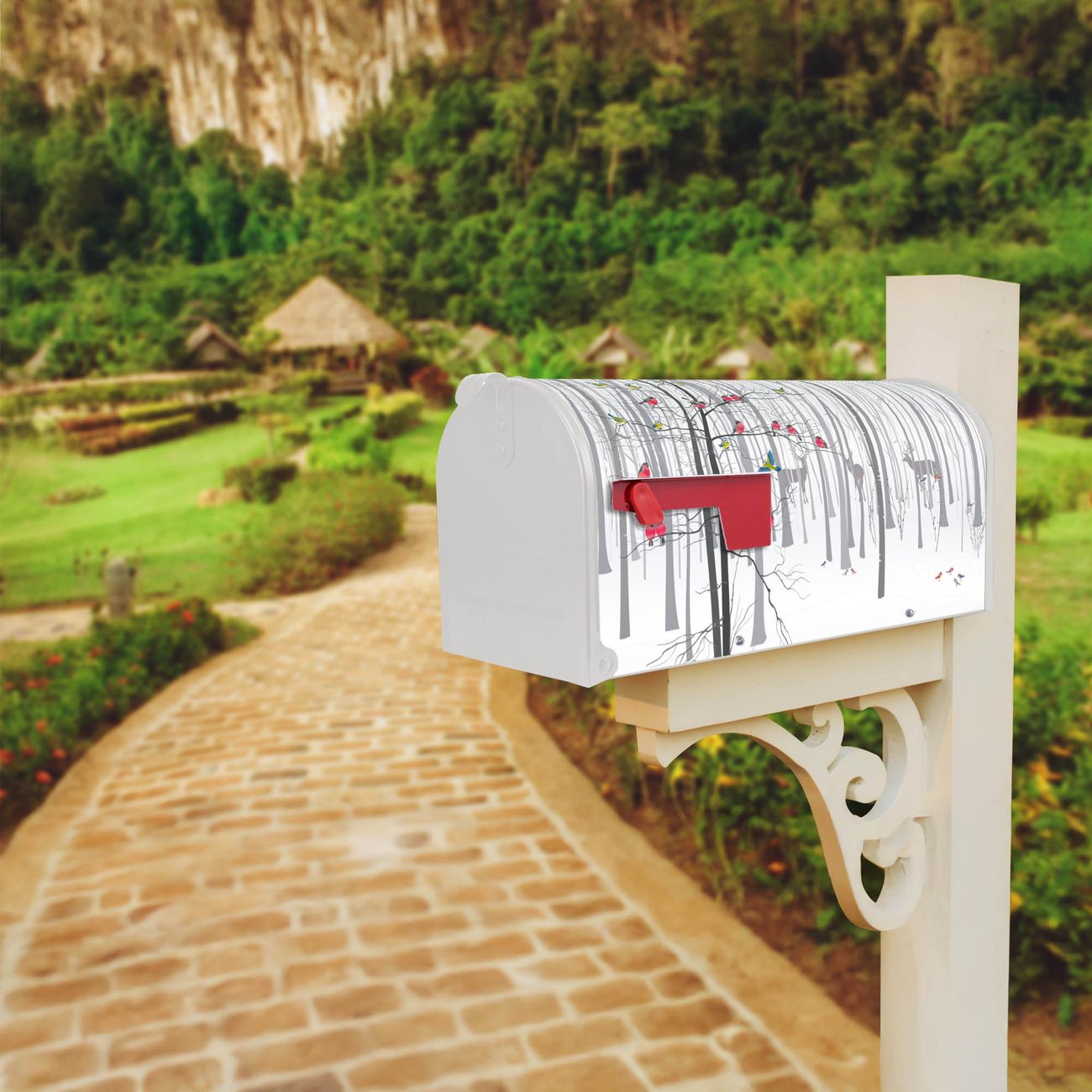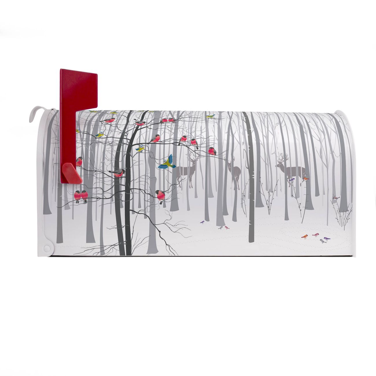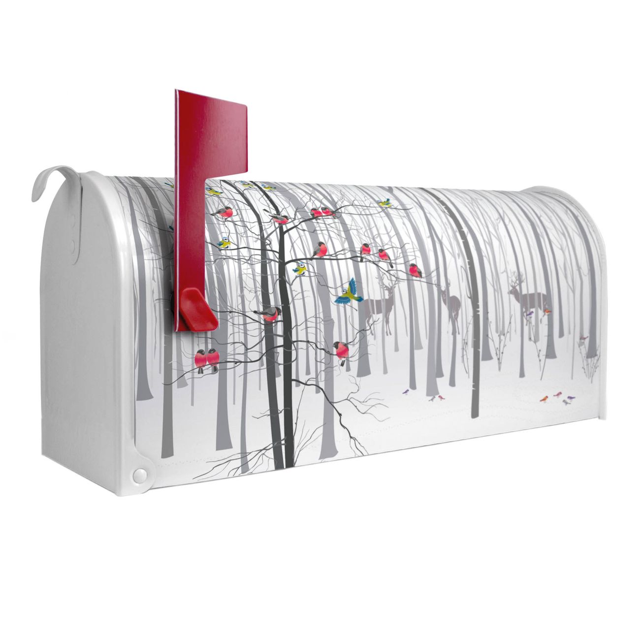 Unser amerikanischer Briefkasten mit dem Motiv Winterwald hat ein sehr ansprechendes und ausgefallenes Design, ist in der Grundfarbe weiß, grün oder schwarz erhältlich. Damit entlocken Sie Ihren Nachbarn und dem Postboten immer wieder ein Lächeln. Die Mailbox ist ein Original Import aus Mississippi USA und wird von unserer kleinen Manufaktur in Sachsen von Hand veredelt. Die US-Mailbox bietet ausreichend Platz auch für große Sendungen, eine Fahne die Ihnen Post anzeigt, wetterfestes und äußerst stabiles Material - so macht Post empfangen Freude.
