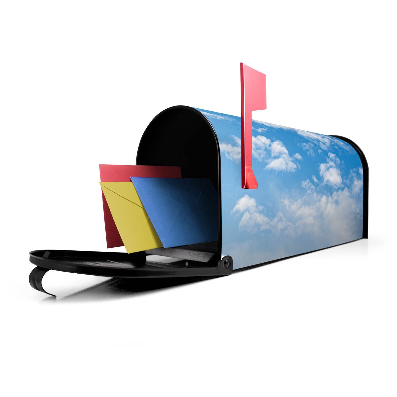 Unser amerikanischer Briefkasten mit dem Motiv Wolken 1 hat ein sehr ansprechendes und ausgefallenes Design, ist in der Grundfarbe weiß, grün oder schwarz erhältlich. Damit entlocken Sie Ihren Nachbarn und dem Postboten immer wieder ein Lächeln. Die Mailbox ist ein Original Import aus Mississippi USA und wird von unserer kleinen Manufaktur in Sachsen von Hand veredelt. Die US-Mailbox bietet ausreichend Platz auch für große Sendungen, eine Fahne die Ihnen Post anzeigt, wetterfestes und äußerst stabiles Material - so macht Post empfangen Freude.