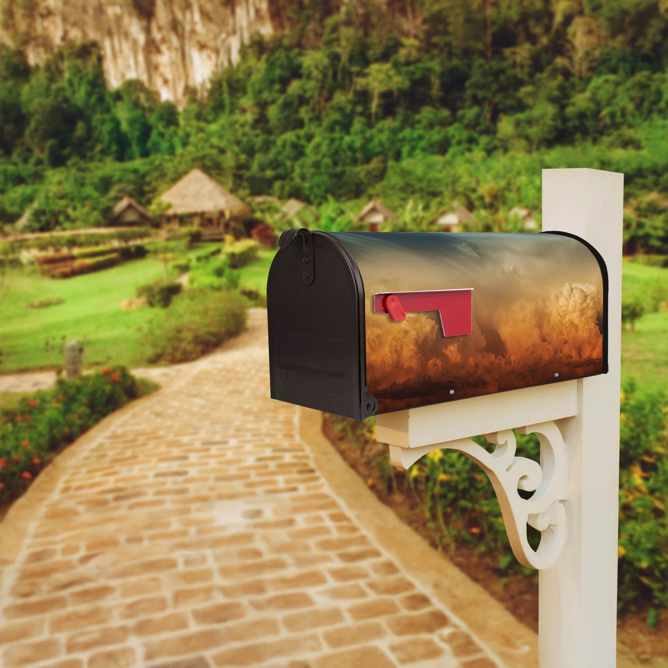 Der amerikanische Briefkasten von banjado mit Wolken in der Dämmerung Motiv bietet Ihnen ausreichend Fassungsvermögen, um große A4 Sendungen und Zeitschriften zu empfangen. Die typisch amerikanische rote Fahne zeigt Ihnen an, wenn Sie Post erhalten haben. Die US-Mailbox besteht aus verzinktem Stahlblech welches lackiert wurde und ist 48 x 22 x 16 CM (BxHxT) groß. Die Folie mit Motiv Wolken in der Dämmerung besteht aus einer wetter- und UV-resistenten Folie, die mit einem Schutzlaminat überzogen ist, sodass die US Mailbox zusätzlich vor Kratzern geschützt ist. An der Unterkante sind 4 Löcher je Seite um die Mailbox, typisch amerikanisch, an einem Holzpfahl oder einem Zaun zu befestigen. Auf Wunsch können Sie bei uns den passenden Standfuß oder die passende Wandhalterung kaufen um die US-Mailbox sicher zu befestigen. Wir bieten Ihnen ebenfalls Namensschilder, bereits beschriftet oder frei zu beschriften, und verschiedene selbst gestaltete Bitte-Keine-Werbung-Aufkleber.