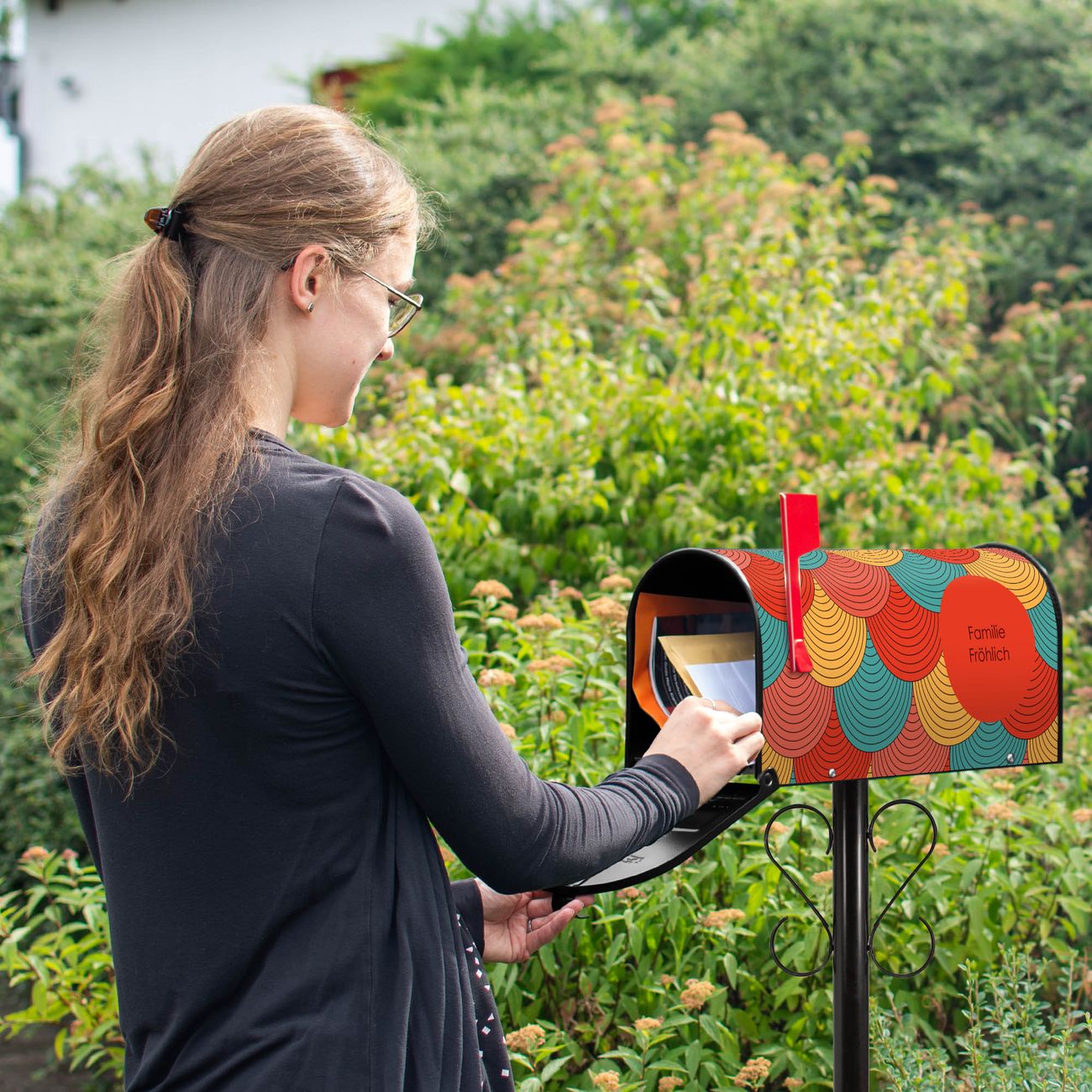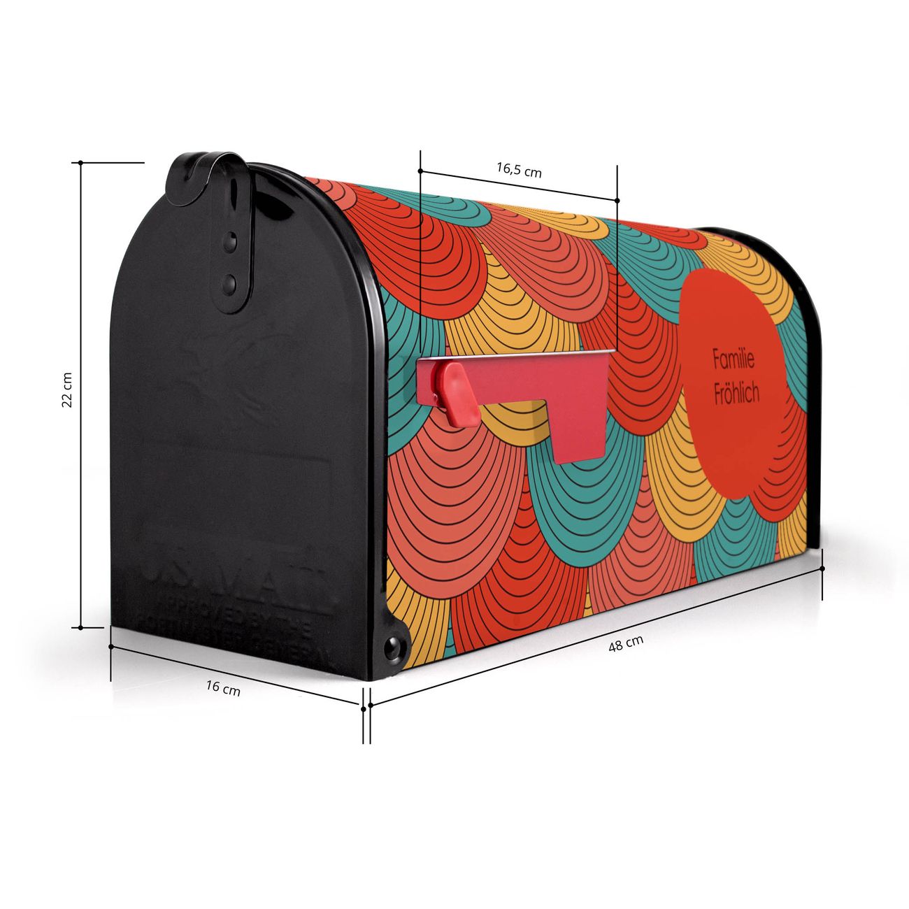 Der amerikanische Briefkasten von banjado mit Wolkenstore Motiv bietet Ihnen ausreichend Fassungsvermögen, um große A4 Sendungen und Zeitschriften zu empfangen. Die typisch amerikanische rote Fahne zeigt Ihnen an, wenn Sie Post erhalten haben. Die US-Mailbox besteht aus verzinktem Stahlblech welches lackiert wurde und ist 48 x 22 x 16 CM (BxHxT) groß. Die Folie mit Motiv Wolkenstore besteht aus einer wetter- und UV-resistenten Folie, die mit einem Schutzlaminat überzogen ist, sodass die US Mailbox zusätzlich vor Kratzern geschützt ist. An der Unterkante sind 4 Löcher je Seite um die Mailbox, typisch amerikanisch, an einem Holzpfahl oder einem Zaun zu befestigen. Auf Wunsch können Sie bei uns den passenden Standfuß oder die passende Wandhalterung kaufen um die US-Mailbox sicher zu befestigen. Wir bieten Ihnen ebenfalls Namensschilder, bereits beschriftet oder frei zu beschriften, und verschiedene selbst gestaltete Bitte-Keine-Werbung-Aufkleber.