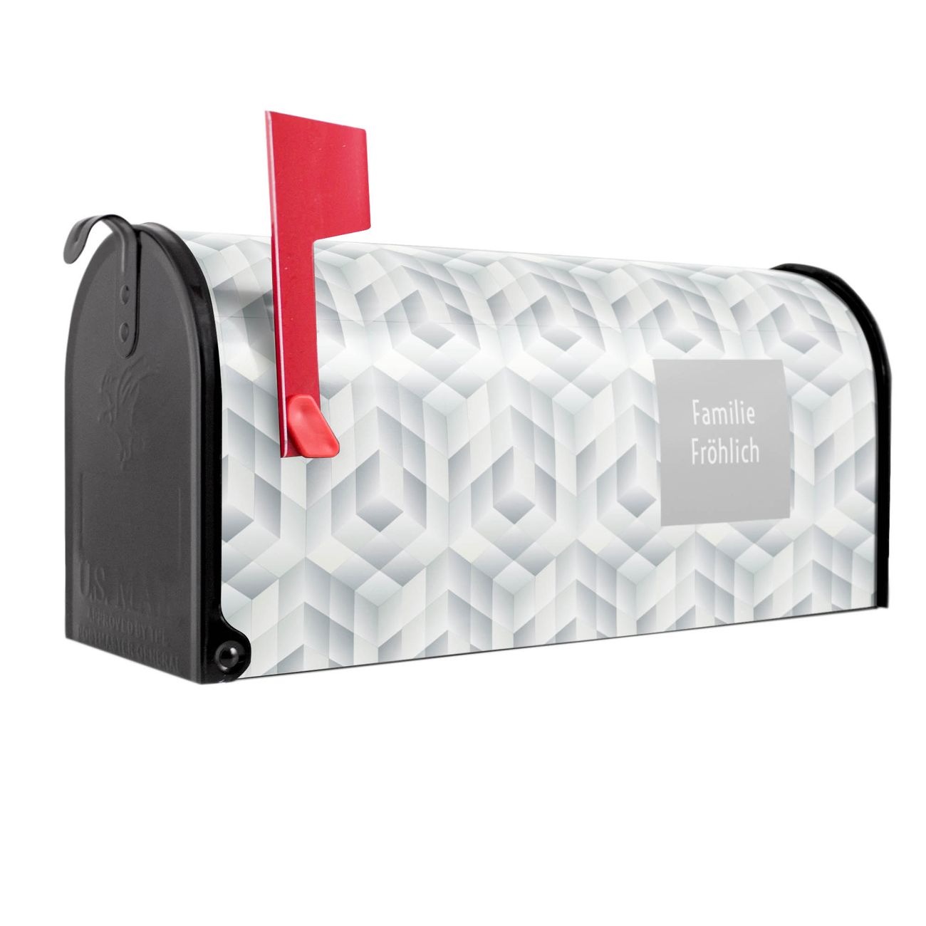 Der amerikanische Briefkasten von banjado mit Würfel Grau Motiv bietet Ihnen ausreichend Fassungsvermögen, um große A4 Sendungen und Zeitschriften zu empfangen. Die typisch amerikanische rote Fahne zeigt Ihnen an, wenn Sie Post erhalten haben. Die US-Mailbox besteht aus verzinktem Stahlblech welches lackiert wurde und ist 48 x 22 x 16 CM (BxHxT) groß. Die Folie mit Motiv Würfel Grau besteht aus einer wetter- und UV-resistenten Folie, die mit einem Schutzlaminat überzogen ist, sodass die US Mailbox zusätzlich vor Kratzern geschützt ist. An der Unterkante sind 4 Löcher je Seite um die Mailbox, typisch amerikanisch, an einem Holzpfahl oder einem Zaun zu befestigen. Auf Wunsch können Sie bei uns den passenden Standfuß oder die passende Wandhalterung kaufen um die US-Mailbox sicher zu befestigen. Wir bieten Ihnen ebenfalls Namensschilder, bereits beschriftet oder frei zu beschriften, und verschiedene selbst gestaltete Bitte-Keine-Werbung-Aufkleber.