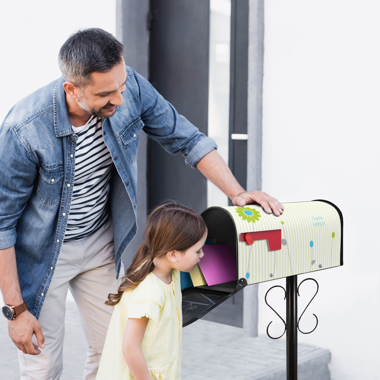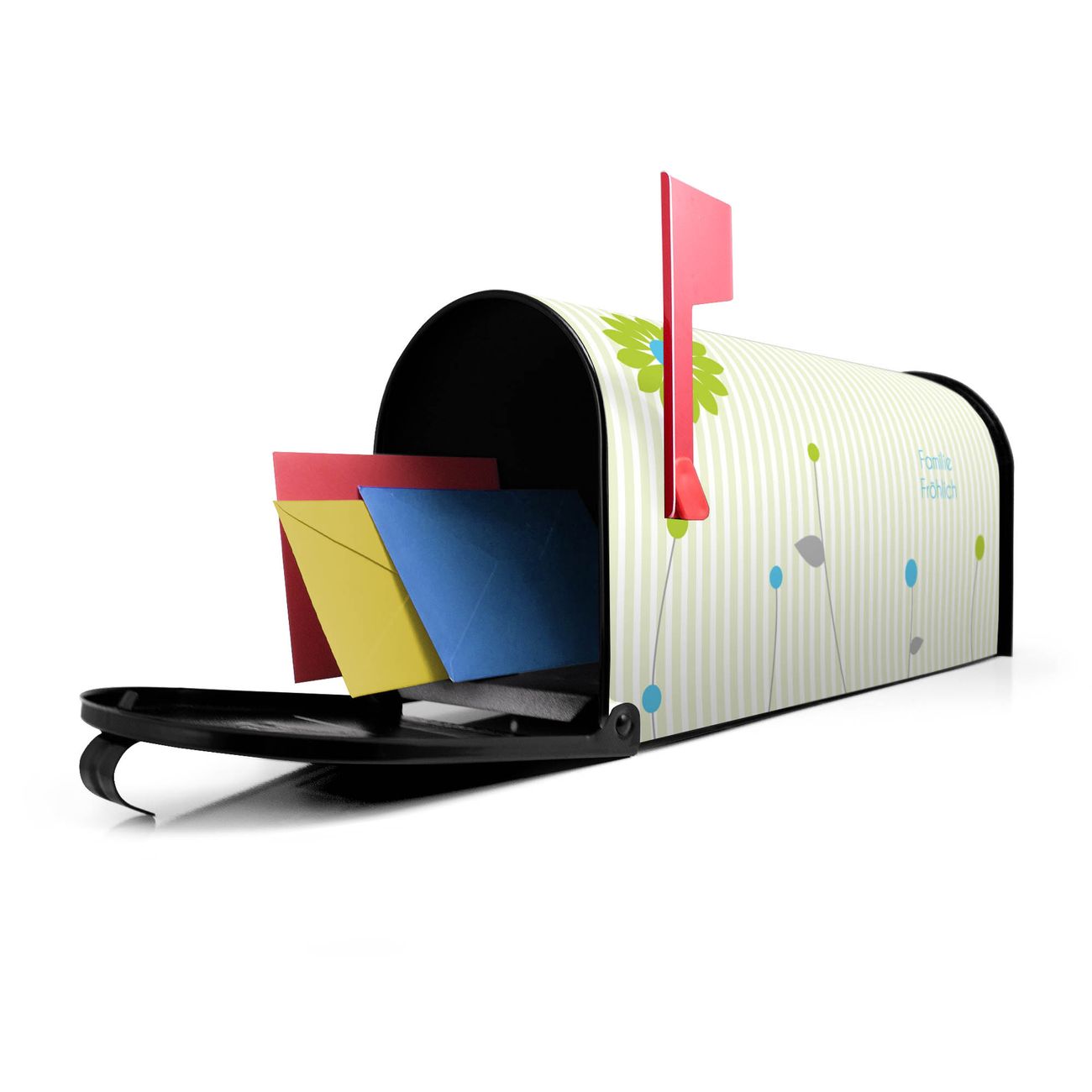 Unser amerikanischer Briefkasten mit dem Motiv Zarte Blumen hat ein sehr ansprechendes und ausgefallenes Design, ist in der Grundfarbe weiß, grün oder schwarz erhältlich. Damit entlocken Sie Ihren Nachbarn und dem Postboten immer wieder ein Lächeln. Die Mailbox ist ein Original Import aus Mississippi USA und wird von unserer kleinen Manufaktur in Sachsen von Hand veredelt. Die US-Mailbox bietet ausreichend Platz auch für große Sendungen, eine Fahne die Ihnen Post anzeigt, wetterfestes und äußerst stabiles Material - so macht Post empfangen Freude.