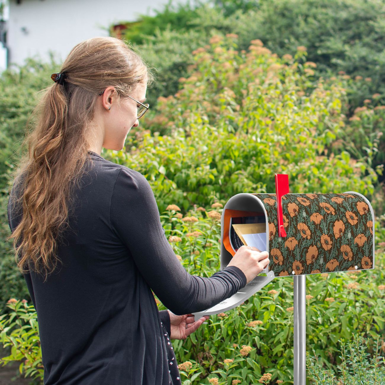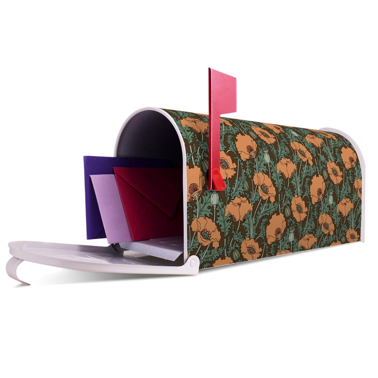 Unser amerikanischer Briefkasten mit dem Motiv Zeichnung Mohn hat ein sehr ansprechendes und ausgefallenes Design, ist in der Grundfarbe weiß, grün oder schwarz erhältlich. Damit entlocken Sie Ihren Nachbarn und dem Postboten immer wieder ein Lächeln. Die Mailbox ist ein Original Import aus Mississippi USA und wird von unserer kleinen Manufaktur in Sachsen von Hand veredelt. Die US-Mailbox bietet ausreichend Platz auch für große Sendungen, eine Fahne die Ihnen Post anzeigt, wetterfestes und äußerst stabiles Material - so macht Post empfangen Freude.