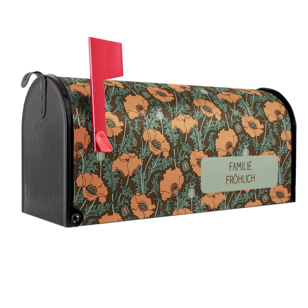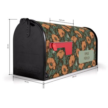 Der amerikanische Briefkasten von banjado mit Zeichnung Mohn Motiv bietet Ihnen ausreichend Fassungsvermögen, um große A4 Sendungen und Zeitschriften zu empfangen. Die typisch amerikanische rote Fahne zeigt Ihnen an, wenn Sie Post erhalten haben. Die US-Mailbox besteht aus verzinktem Stahlblech welches lackiert wurde und ist 48 x 22 x 16 CM (BxHxT) groß. Die Folie mit Motiv Zeichnung Mohn besteht aus einer wetter- und UV-resistenten Folie, die mit einem Schutzlaminat überzogen ist, sodass die US Mailbox zusätzlich vor Kratzern geschützt ist. An der Unterkante sind 4 Löcher je Seite um die Mailbox, typisch amerikanisch, an einem Holzpfahl oder einem Zaun zu befestigen. Auf Wunsch können Sie bei uns den passenden Standfuß oder die passende Wandhalterung kaufen um die US-Mailbox sicher zu befestigen. Wir bieten Ihnen ebenfalls Namensschilder, bereits beschriftet oder frei zu beschriften, und verschiedene selbst gestaltete Bitte-Keine-Werbung-Aufkleber.