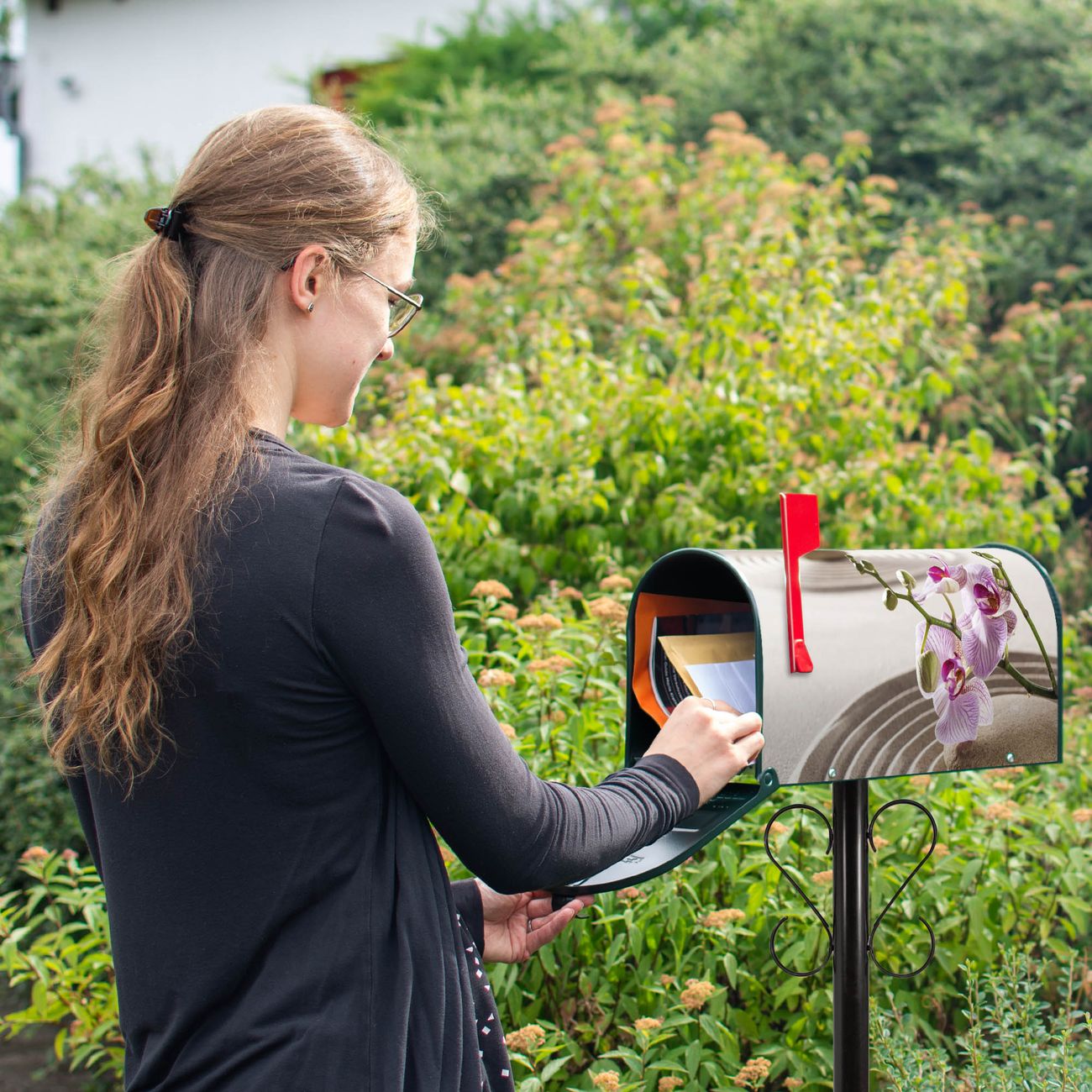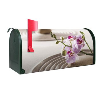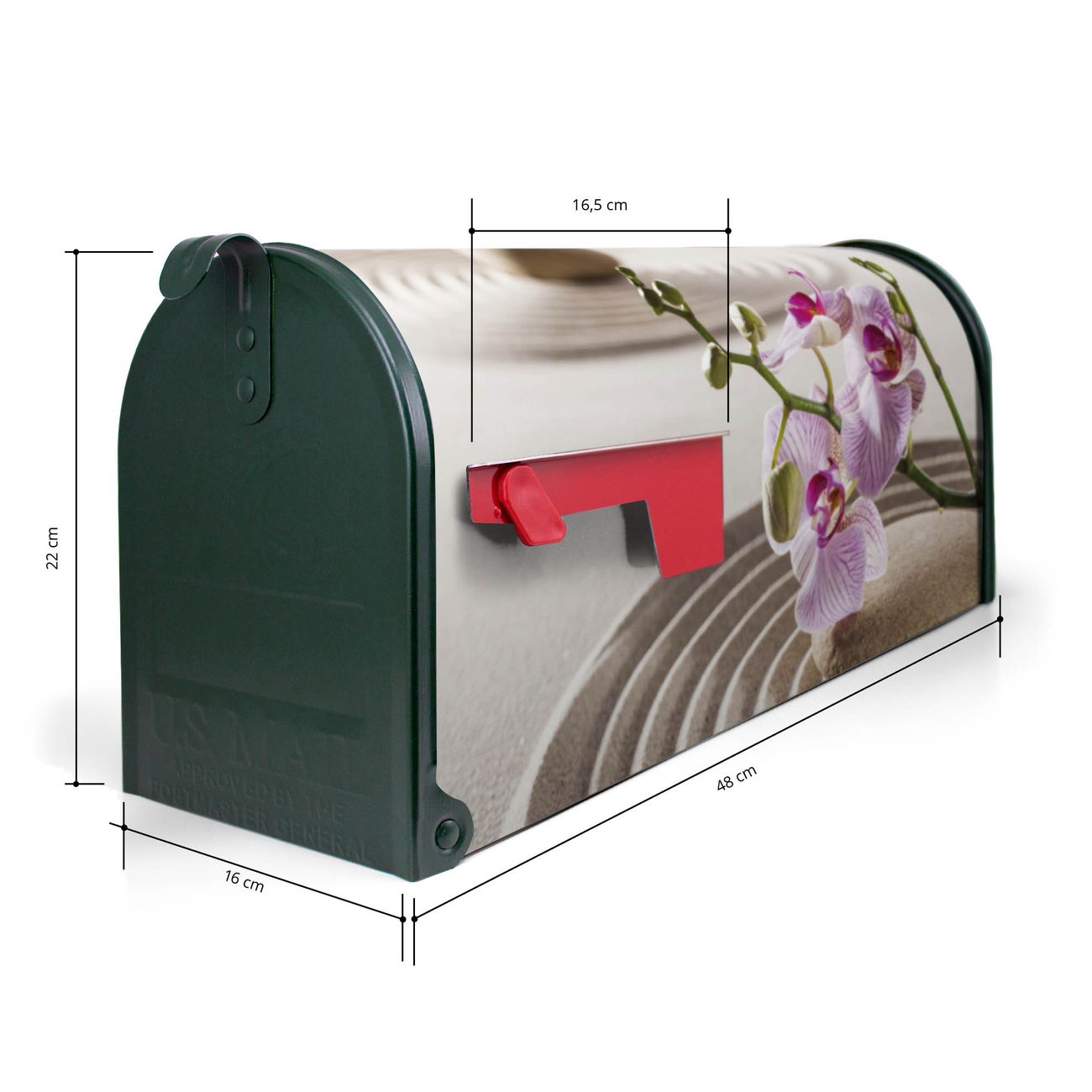 Der amerikanische Briefkasten von banjado mit Zen Relax Motiv bietet Ihnen ausreichend Fassungsvermögen, um große A4 Sendungen und Zeitschriften zu empfangen. Die typisch amerikanische rote Fahne zeigt Ihnen an, wenn Sie Post erhalten haben. Die US-Mailbox besteht aus verzinktem Stahlblech welches lackiert wurde und ist 48 x 22 x 16 CM (BxHxT) groß. Die Folie mit Motiv Zen Relax besteht aus einer wetter- und UV-resistenten Folie, die mit einem Schutzlaminat überzogen ist, sodass die US Mailbox zusätzlich vor Kratzern geschützt ist. An der Unterkante sind 4 Löcher je Seite um die Mailbox, typisch amerikanisch, an einem Holzpfahl oder einem Zaun zu befestigen. Auf Wunsch können Sie bei uns den passenden Standfuß oder die passende Wandhalterung kaufen um die US-Mailbox sicher zu befestigen. Wir bieten Ihnen ebenfalls Namensschilder, bereits beschriftet oder frei zu beschriften, und verschiedene selbst gestaltete Bitte-Keine-Werbung-Aufkleber.