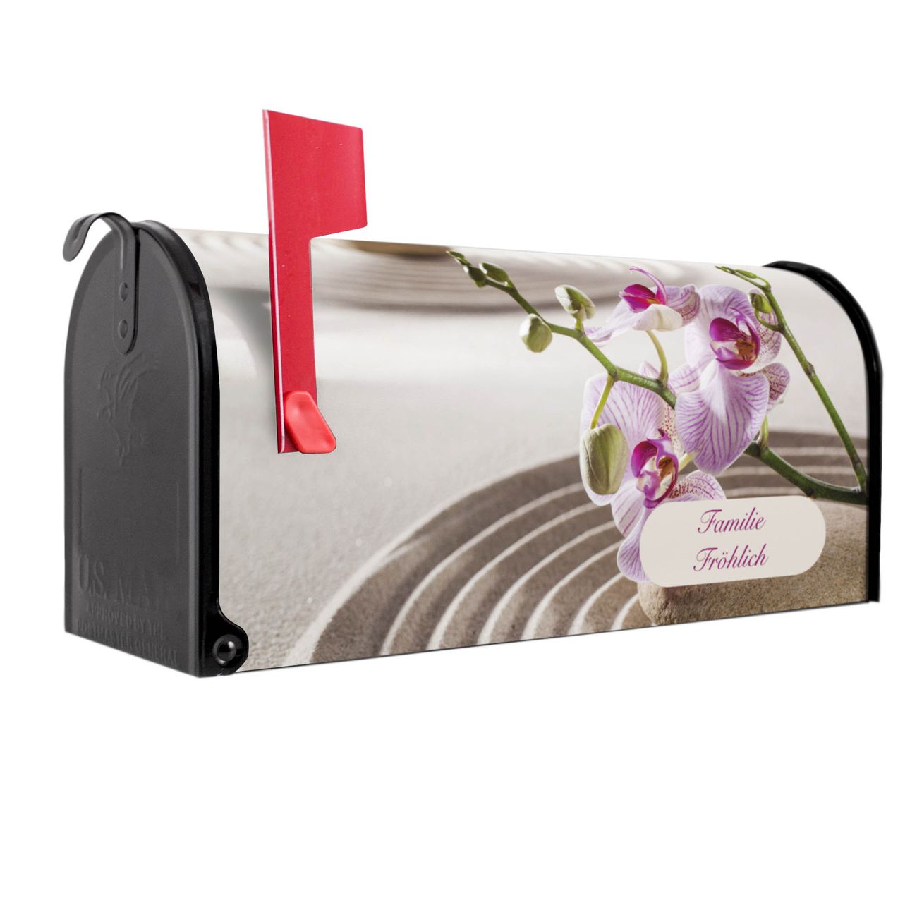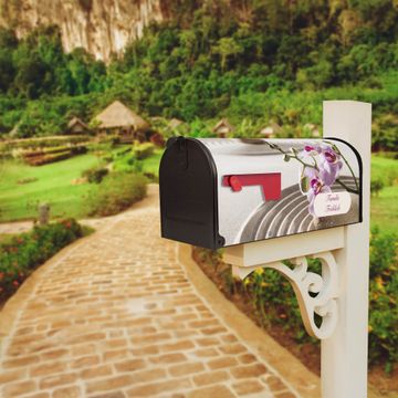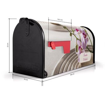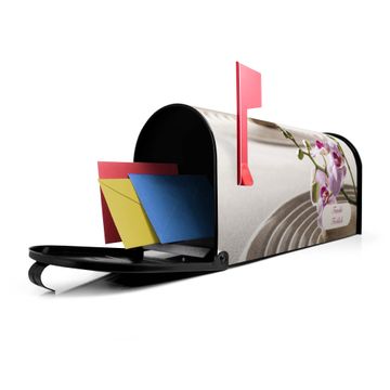 Der amerikanische Briefkasten von banjado mit Zen Relax Motiv bietet Ihnen ausreichend Fassungsvermögen, um große A4 Sendungen und Zeitschriften zu empfangen. Die typisch amerikanische rote Fahne zeigt Ihnen an, wenn Sie Post erhalten haben. Die US-Mailbox besteht aus verzinktem Stahlblech welches lackiert wurde und ist 48 x 22 x 16 CM (BxHxT) groß. Die Folie mit Motiv Zen Relax besteht aus einer wetter- und UV-resistenten Folie, die mit einem Schutzlaminat überzogen ist, sodass die US Mailbox zusätzlich vor Kratzern geschützt ist. An der Unterkante sind 4 Löcher je Seite um die Mailbox, typisch amerikanisch, an einem Holzpfahl oder einem Zaun zu befestigen. Auf Wunsch können Sie bei uns den passenden Standfuß oder die passende Wandhalterung kaufen um die US-Mailbox sicher zu befestigen. Wir bieten Ihnen ebenfalls Namensschilder, bereits beschriftet oder frei zu beschriften, und verschiedene selbst gestaltete Bitte-Keine-Werbung-Aufkleber.