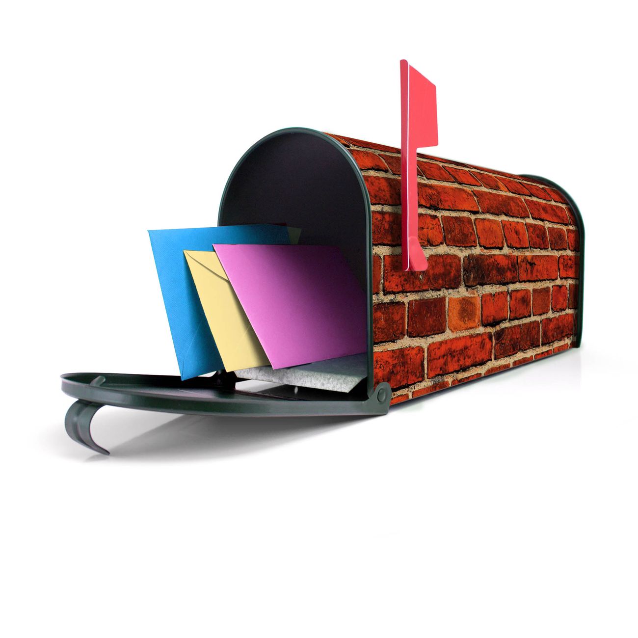 Unser amerikanischer Briefkasten mit dem Motiv Ziegelwand hat ein sehr ansprechendes und ausgefallenes Design, ist in der Grundfarbe weiß, grün oder schwarz erhältlich. Damit entlocken Sie Ihren Nachbarn und dem Postboten immer wieder ein Lächeln. Die Mailbox ist ein Original Import aus Mississippi USA und wird von unserer kleinen Manufaktur in Sachsen von Hand veredelt. Die US-Mailbox bietet ausreichend Platz auch für große Sendungen, eine Fahne die Ihnen Post anzeigt, wetterfestes und äußerst stabiles Material - so macht Post empfangen Freude.