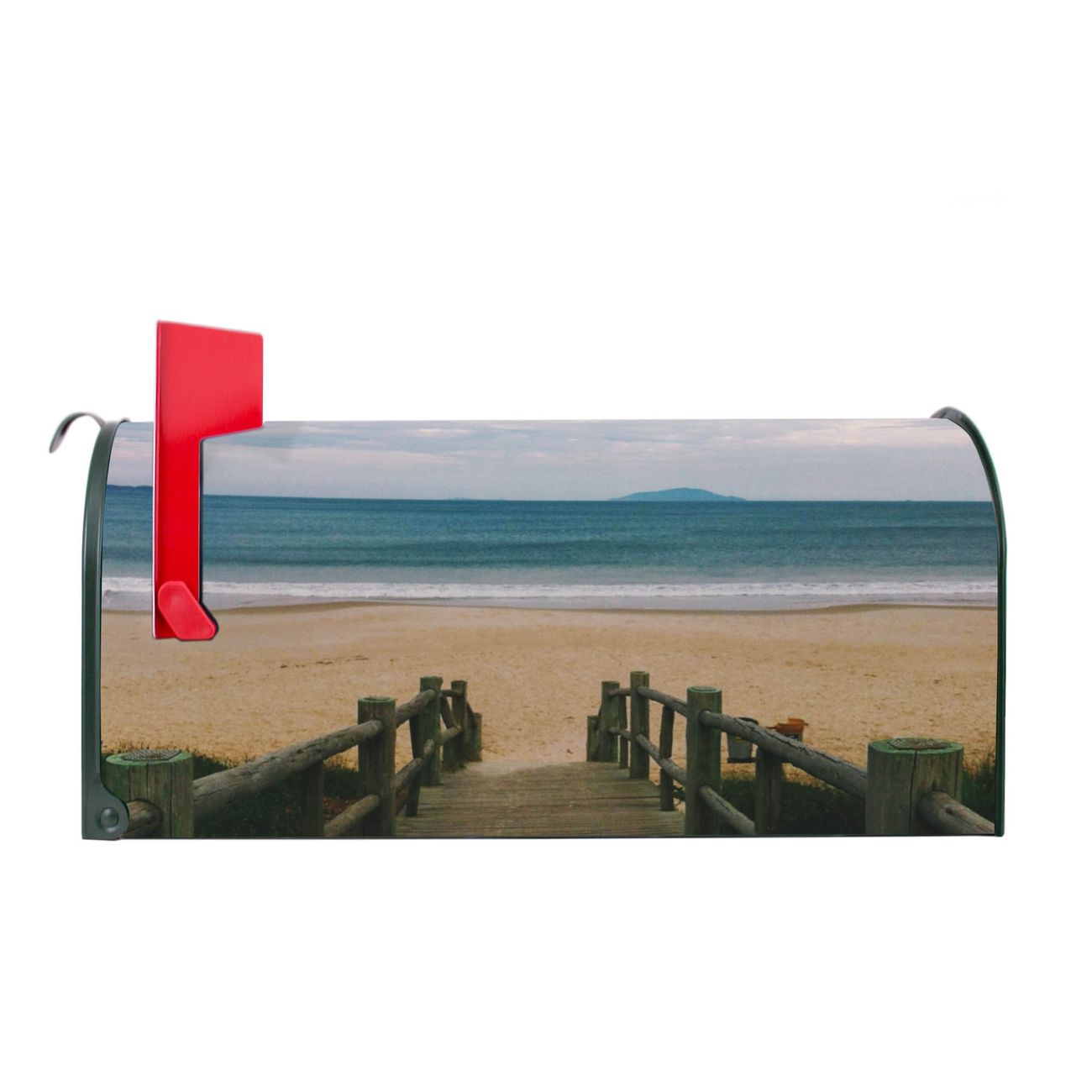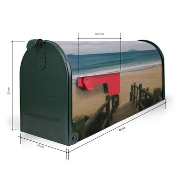 Der amerikanische Briefkasten von banjado mit Zum Strand Motiv bietet Ihnen ausreichend Fassungsvermögen, um große A4 Sendungen und Zeitschriften zu empfangen. Die typisch amerikanische rote Fahne zeigt Ihnen an, wenn Sie Post erhalten haben. Die US-Mailbox besteht aus verzinktem Stahlblech welches lackiert wurde und ist 48 x 22 x 16 CM (BxHxT) groß. Die Folie mit Motiv Zum Strand besteht aus einer wetter- und UV-resistenten Folie, die mit einem Schutzlaminat überzogen ist, sodass die US Mailbox zusätzlich vor Kratzern geschützt ist. An der Unterkante sind 4 Löcher je Seite um die Mailbox, typisch amerikanisch, an einem Holzpfahl oder einem Zaun zu befestigen. Auf Wunsch können Sie bei uns den passenden Standfuß oder die passende Wandhalterung kaufen um die US-Mailbox sicher zu befestigen. Wir bieten Ihnen ebenfalls Namensschilder, bereits beschriftet oder frei zu beschriften, und verschiedene selbst gestaltete Bitte-Keine-Werbung-Aufkleber.