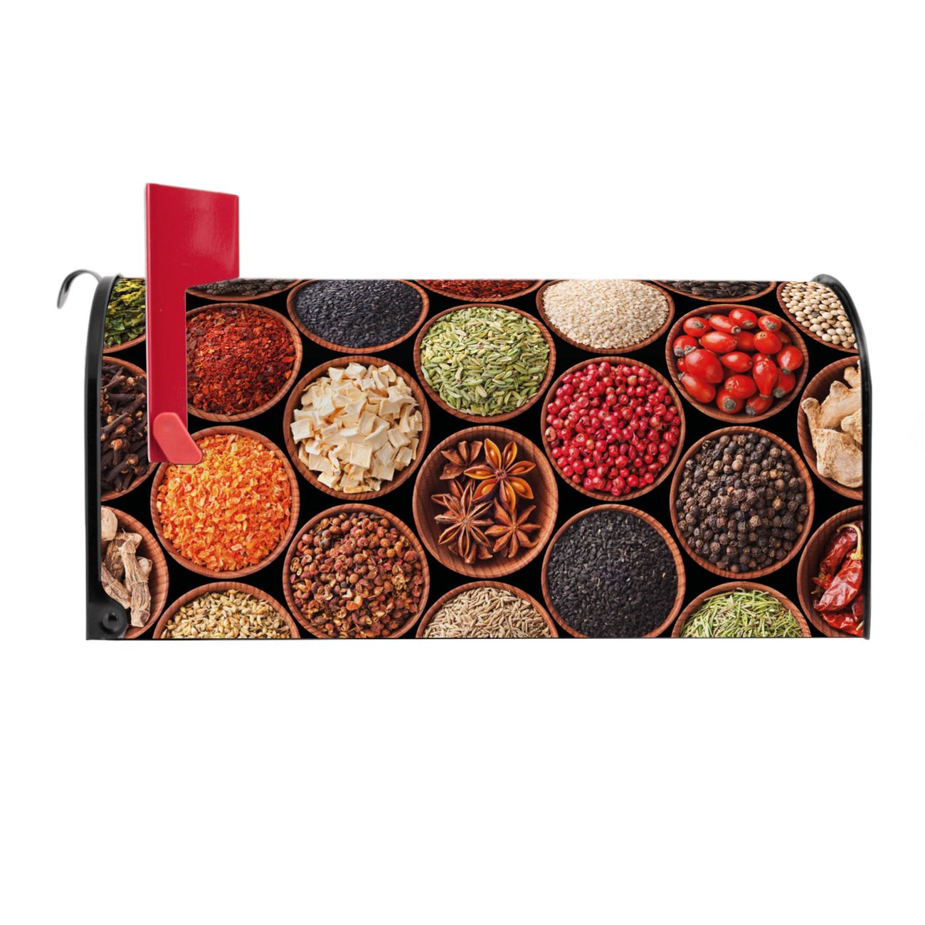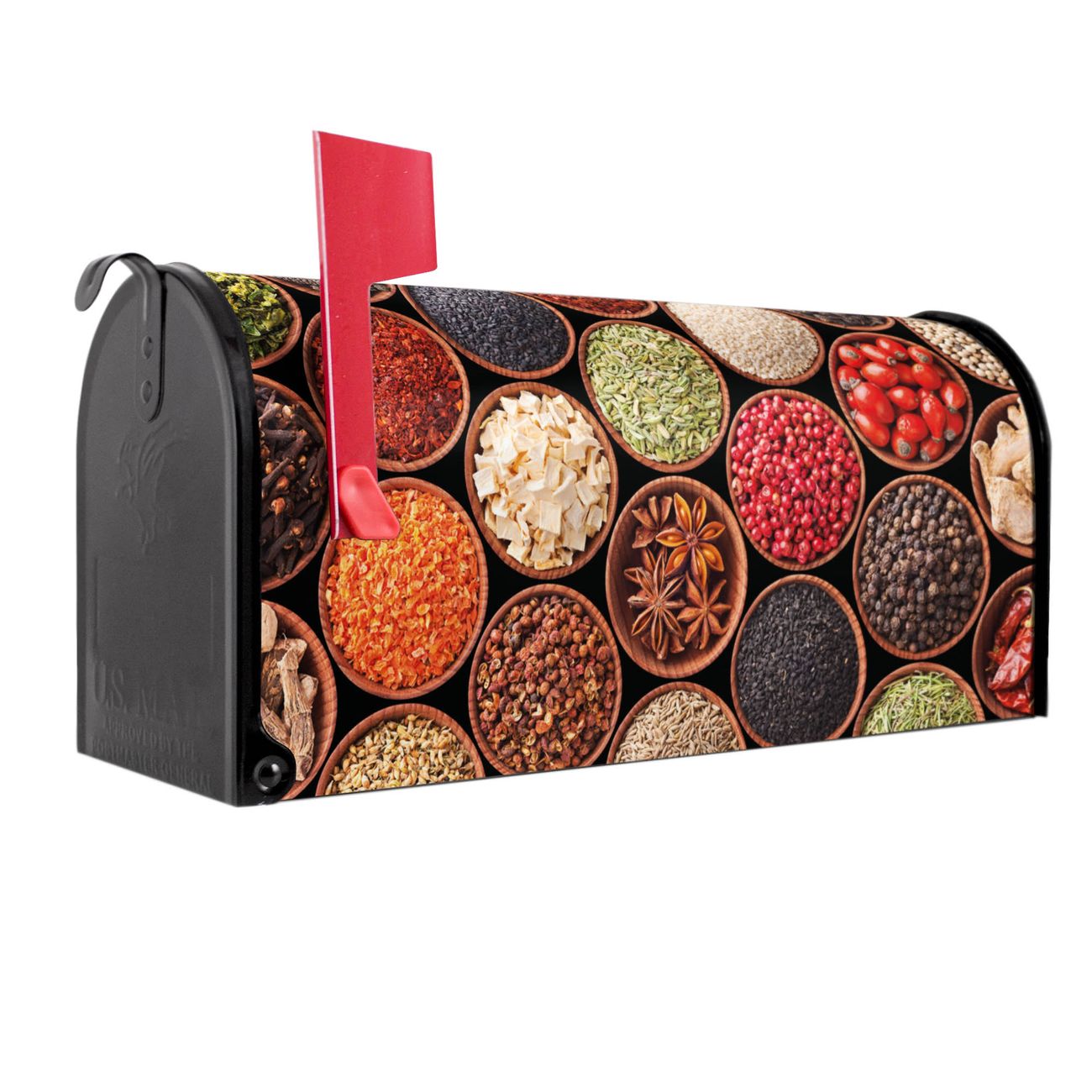 Unser amerikanischer Briefkasten mit dem Motiv Zutaten hat ein sehr ansprechendes und ausgefallenes Design, ist in der Grundfarbe weiß, grün oder schwarz erhältlich. Damit entlocken Sie Ihren Nachbarn und dem Postboten immer wieder ein Lächeln. Die Mailbox ist ein Original Import aus Mississippi USA und wird von unserer kleinen Manufaktur in Sachsen von Hand veredelt. Die US-Mailbox bietet ausreichend Platz auch für große Sendungen, eine Fahne die Ihnen Post anzeigt, wetterfestes und äußerst stabiles Material - so macht Post empfangen Freude.