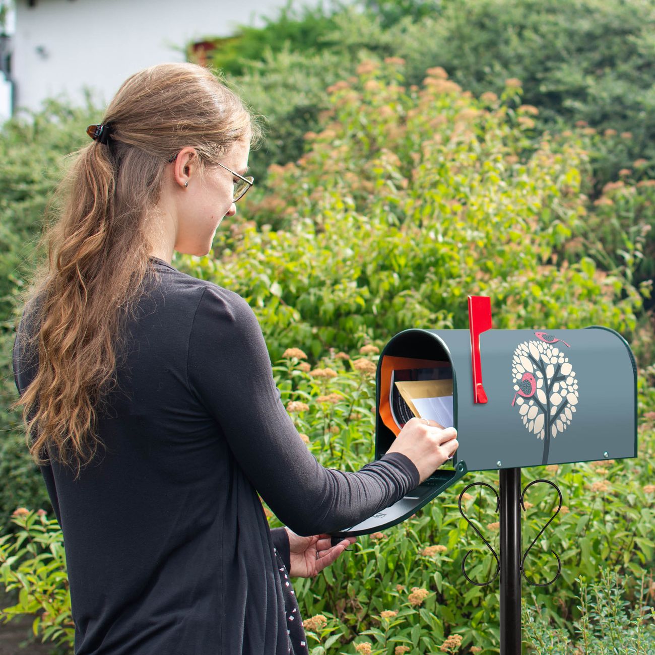 Unser amerikanischer Briefkasten mit dem Motiv Zwei Rosa Vögel hat ein sehr ansprechendes und ausgefallenes Design, ist in der Grundfarbe weiß, grün oder schwarz erhältlich. Damit entlocken Sie Ihren Nachbarn und dem Postboten immer wieder ein Lächeln. Die Mailbox ist ein Original Import aus Mississippi USA und wird von unserer kleinen Manufaktur in Sachsen von Hand veredelt. Die US-Mailbox bietet ausreichend Platz auch für große Sendungen, eine Fahne die Ihnen Post anzeigt, wetterfestes und äußerst stabiles Material - so macht Post empfangen Freude.