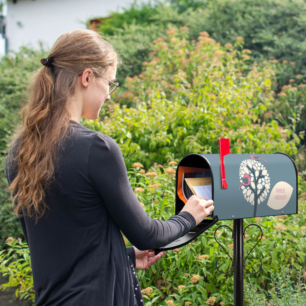 Unser amerikanischer Briefkasten mit dem Motiv Zwei Rosa Vögel hat ein sehr ansprechendes und ausgefallenes Design, ist in der Grundfarbe weiß, grün oder schwarz erhältlich. Damit entlocken Sie Ihren Nachbarn und dem Postboten immer wieder ein Lächeln. Die Mailbox ist ein Original Import aus Mississippi USA und wird von unserer kleinen Manufaktur in Sachsen von Hand veredelt. Die US-Mailbox bietet ausreichend Platz auch für große Sendungen, eine Fahne die Ihnen Post anzeigt, wetterfestes und äußerst stabiles Material - so macht Post empfangen Freude.