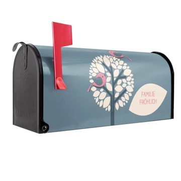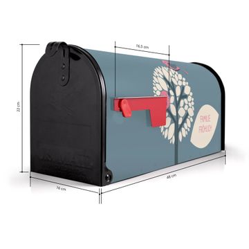 Der amerikanische Briefkasten von banjado mit Zwei Rosa Vögel Motiv bietet Ihnen ausreichend Fassungsvermögen, um große A4 Sendungen und Zeitschriften zu empfangen. Die typisch amerikanische rote Fahne zeigt Ihnen an, wenn Sie Post erhalten haben. Die US-Mailbox besteht aus verzinktem Stahlblech welches lackiert wurde und ist 48 x 22 x 16 CM (BxHxT) groß. Die Folie mit Motiv Zwei Rosa Vögel besteht aus einer wetter- und UV-resistenten Folie, die mit einem Schutzlaminat überzogen ist, sodass die US Mailbox zusätzlich vor Kratzern geschützt ist. An der Unterkante sind 4 Löcher je Seite um die Mailbox, typisch amerikanisch, an einem Holzpfahl oder einem Zaun zu befestigen. Auf Wunsch können Sie bei uns den passenden Standfuß oder die passende Wandhalterung kaufen um die US-Mailbox sicher zu befestigen. Wir bieten Ihnen ebenfalls Namensschilder, bereits beschriftet oder frei zu beschriften, und verschiedene selbst gestaltete Bitte-Keine-Werbung-Aufkleber.