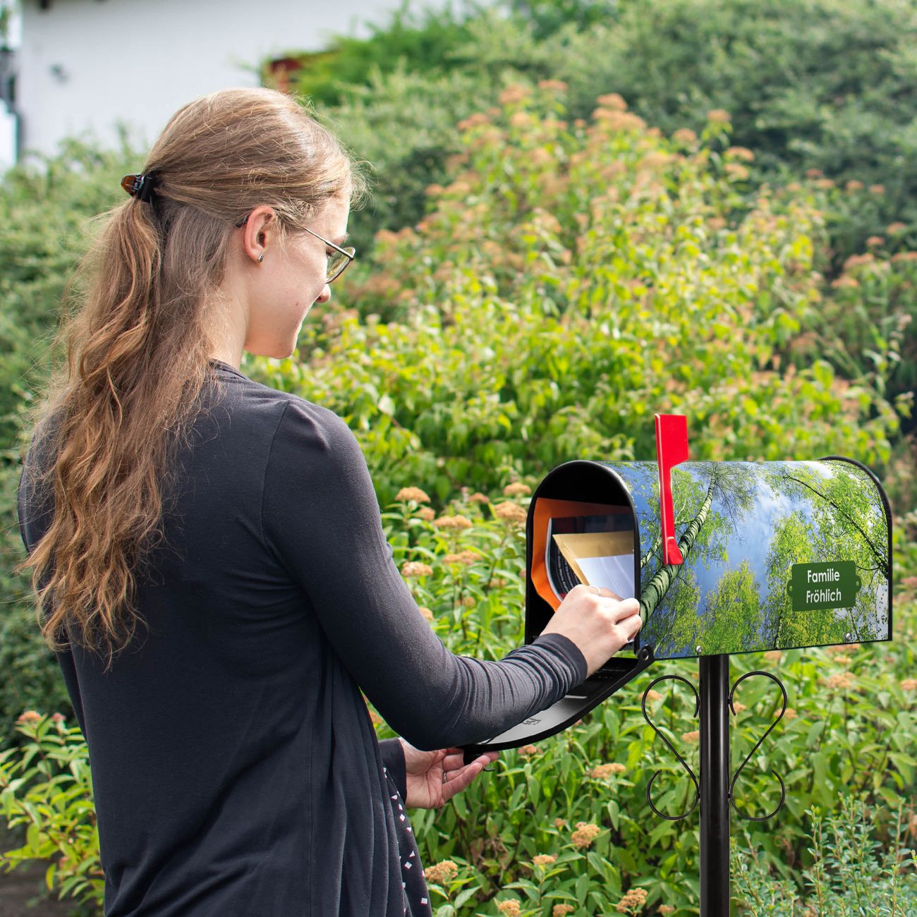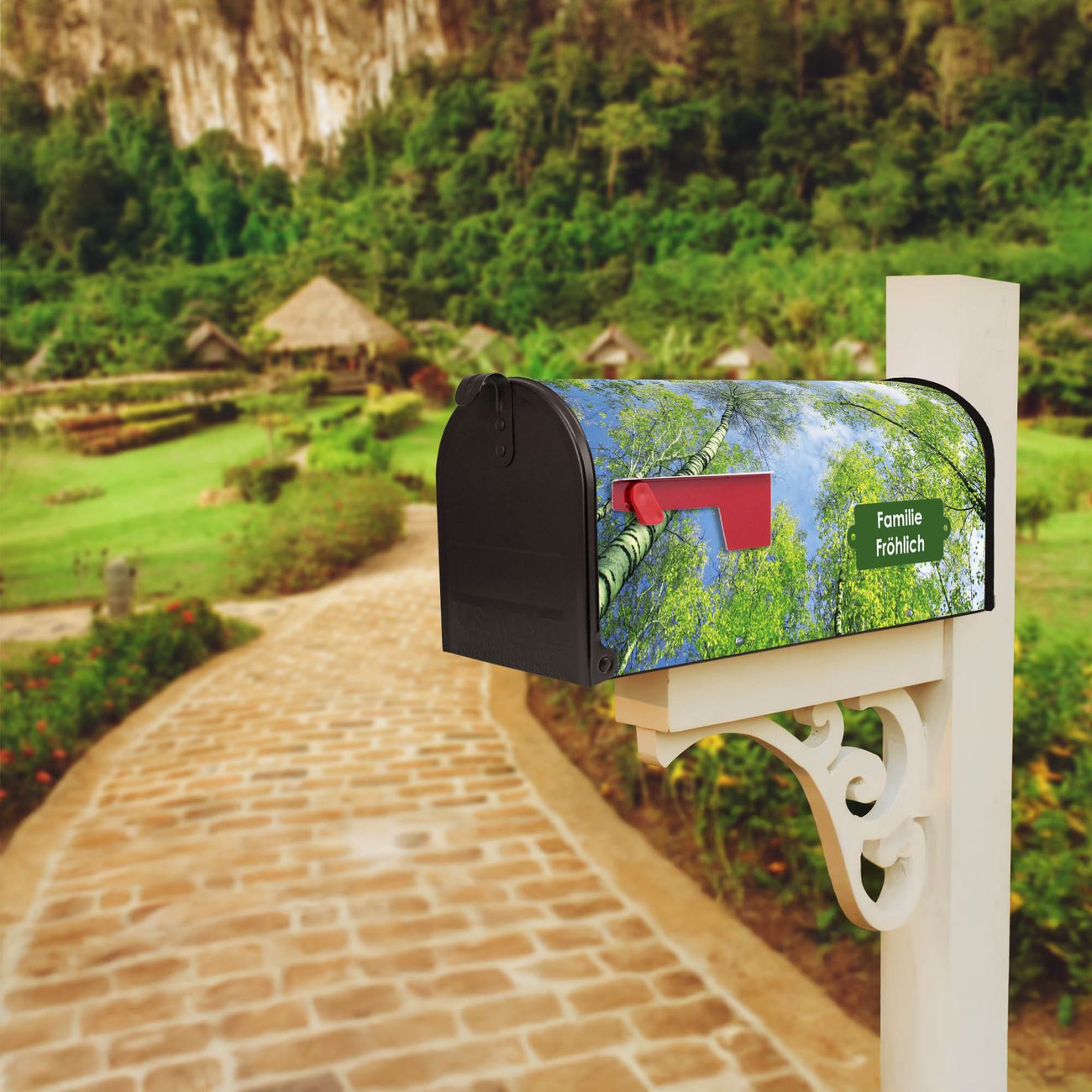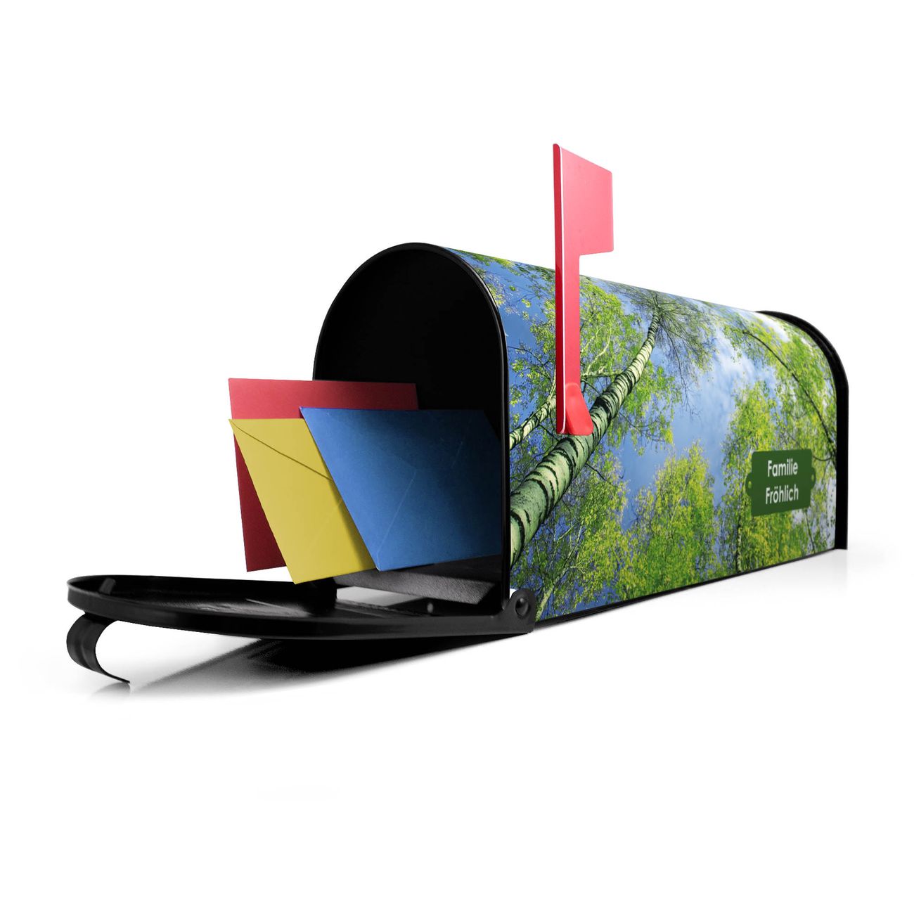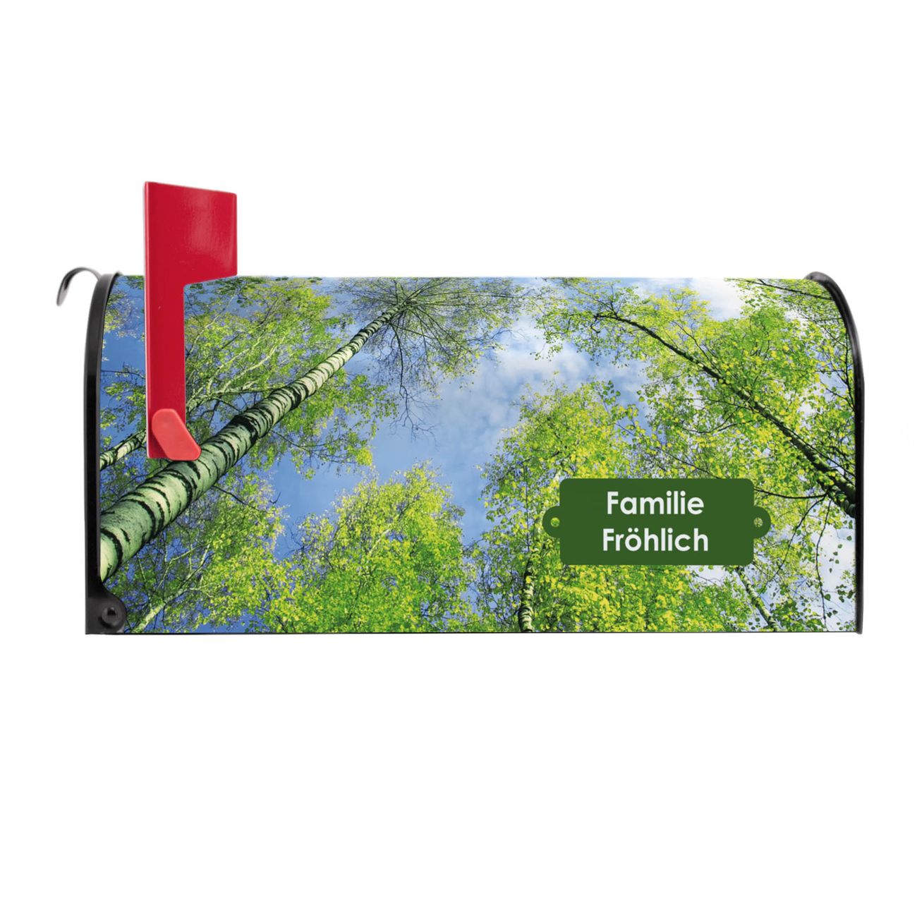 Unser amerikanischer Briefkasten mit dem Motiv Zwischen Bäumen 3 hat ein sehr ansprechendes und ausgefallenes Design, ist in der Grundfarbe weiß, grün oder schwarz erhältlich. Damit entlocken Sie Ihren Nachbarn und dem Postboten immer wieder ein Lächeln. Die Mailbox ist ein Original Import aus Mississippi USA und wird von unserer kleinen Manufaktur in Sachsen von Hand veredelt. Die US-Mailbox bietet ausreichend Platz auch für große Sendungen, eine Fahne die Ihnen Post anzeigt, wetterfestes und äußerst stabiles Material - so macht Post empfangen Freude.