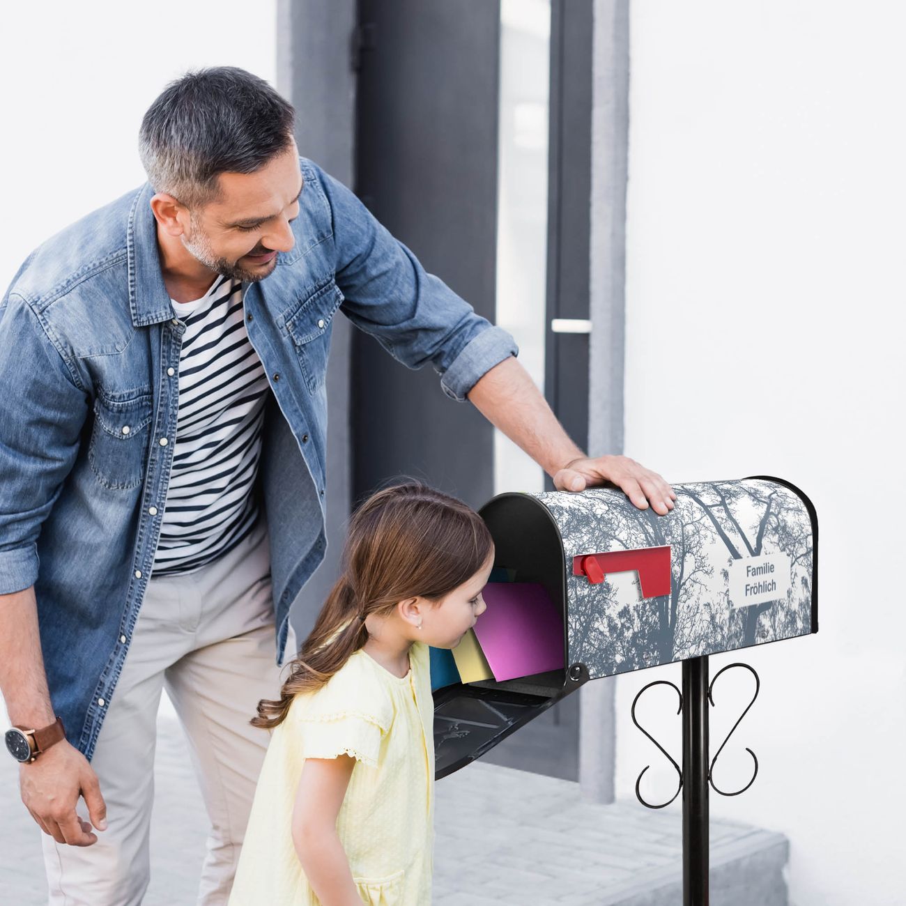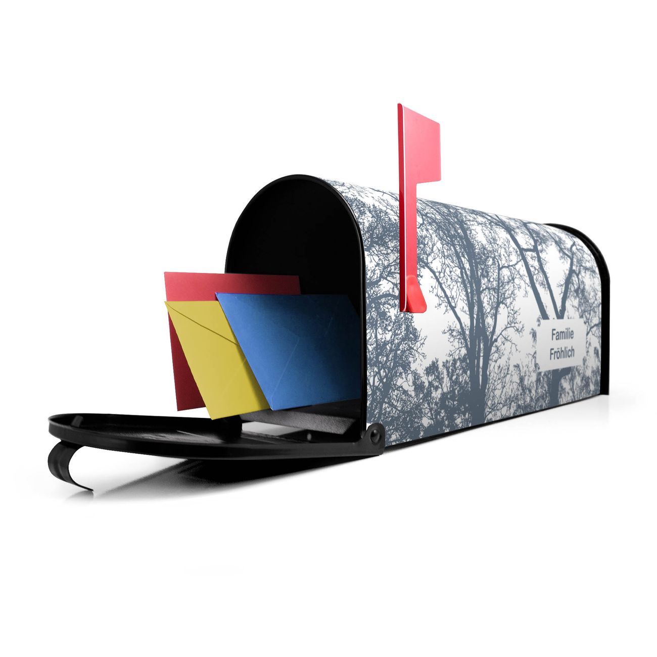 Unser amerikanischer Briefkasten mit dem Motiv Zwischen Bäumen 7 hat ein sehr ansprechendes und ausgefallenes Design, ist in der Grundfarbe weiß, grün oder schwarz erhältlich. Damit entlocken Sie Ihren Nachbarn und dem Postboten immer wieder ein Lächeln. Die Mailbox ist ein Original Import aus Mississippi USA und wird von unserer kleinen Manufaktur in Sachsen von Hand veredelt. Die US-Mailbox bietet ausreichend Platz auch für große Sendungen, eine Fahne die Ihnen Post anzeigt, wetterfestes und äußerst stabiles Material - so macht Post empfangen Freude.