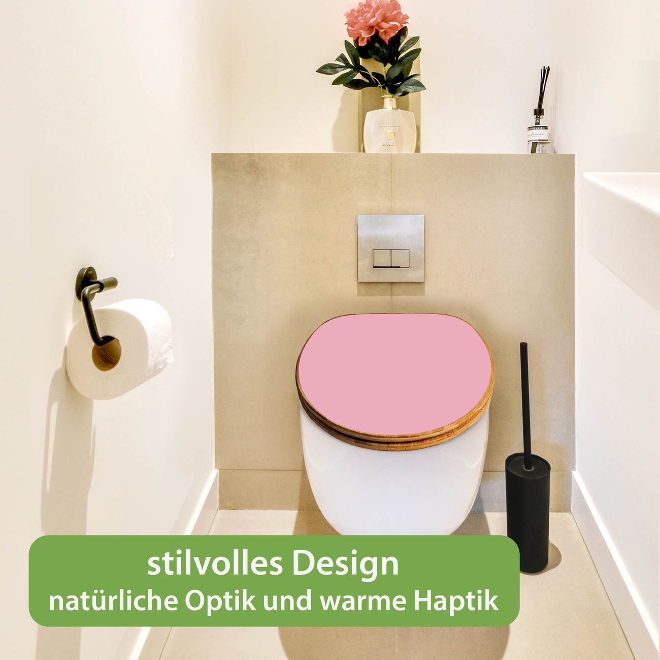 Mit dem banjado Toilettensitz in Bambus verbinden Sie Design und Funktionalität. Sie erhalten den WC-Sitz mit bewährter Holz Qualität und Universal Scharnieren. Das Motiv Farbe Malve besteht aus einer schutzlaminierten Motivfolie, die durch das Schutzlaminat zusätzlich vor Kratzern schützt. Durch diesen Motivdruck wird der WC-Sitz zu einem Blickfang in Ihrem Bad.
