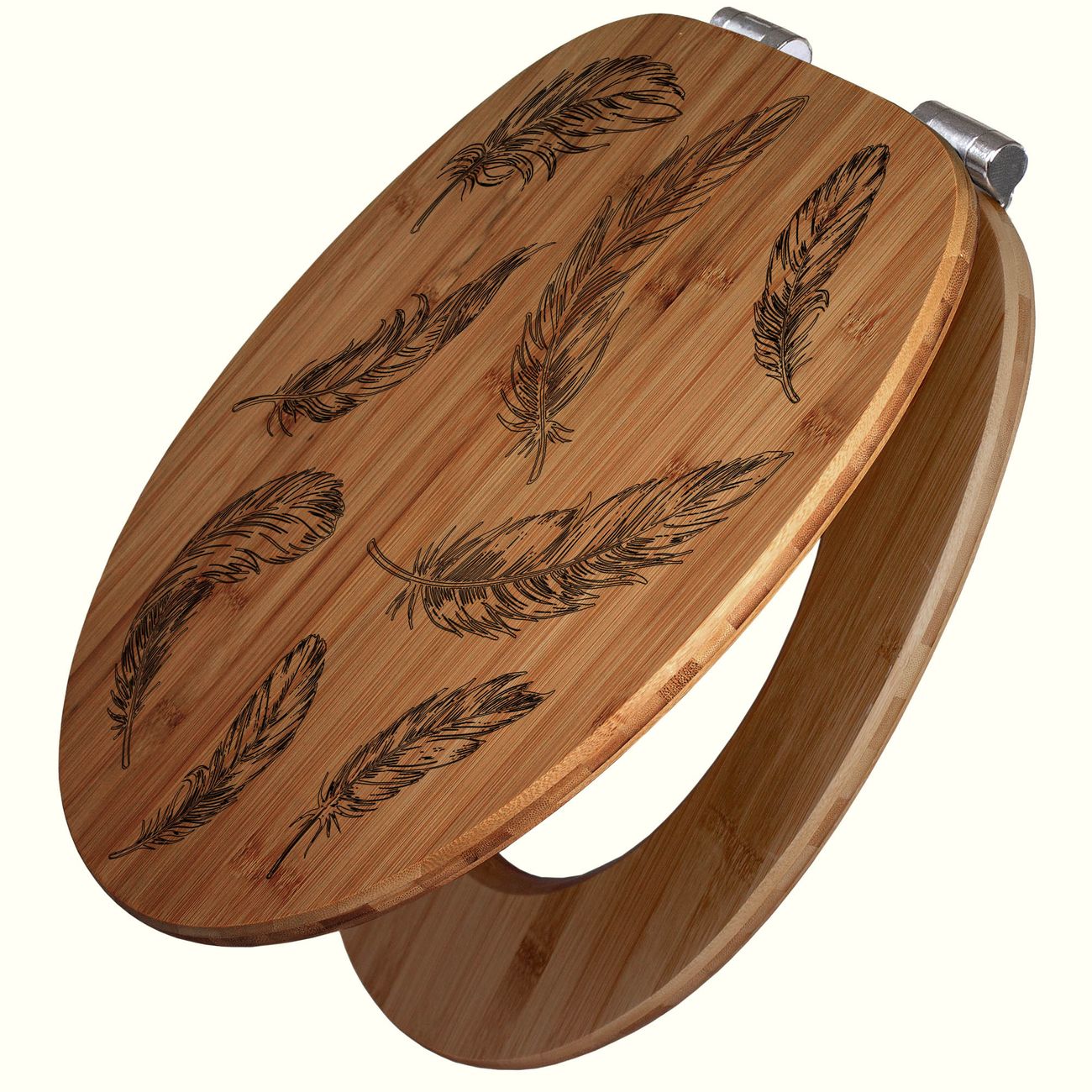 Design WC-Sitz Bambus Absenkautomatik Gravur Federn