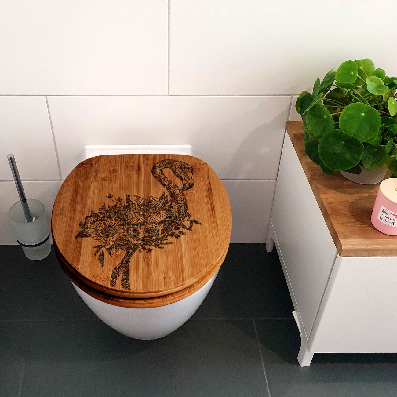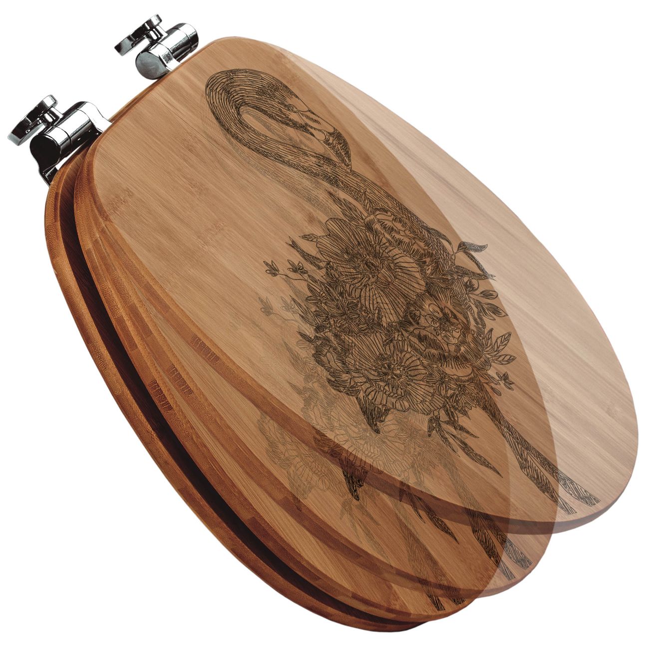 Design WC-Sitz Bambus Absenkautomatik Gravur Flamingo Blumen