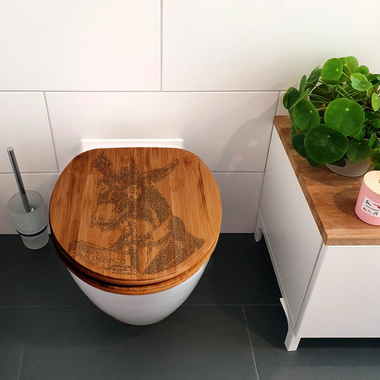 Design WC-Sitz Bambus Absenkautomatik Gravur Herr Esel