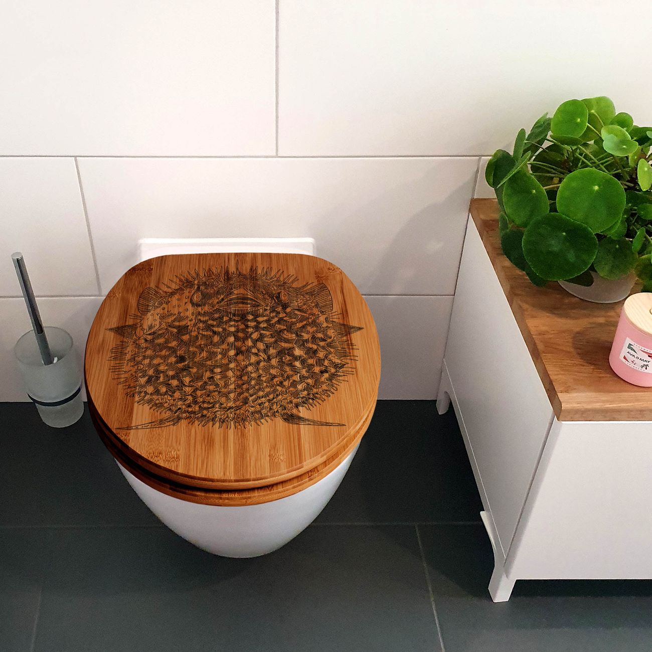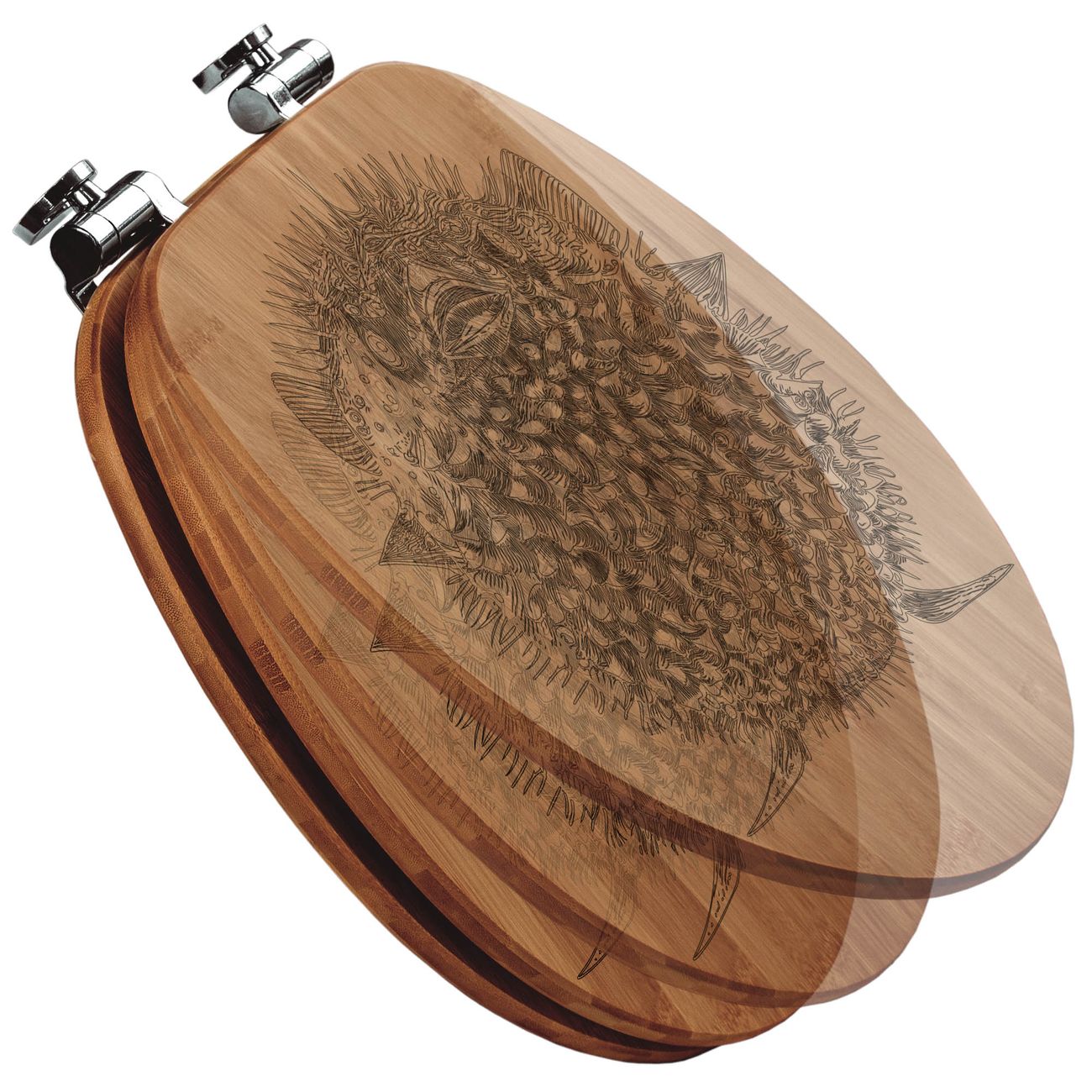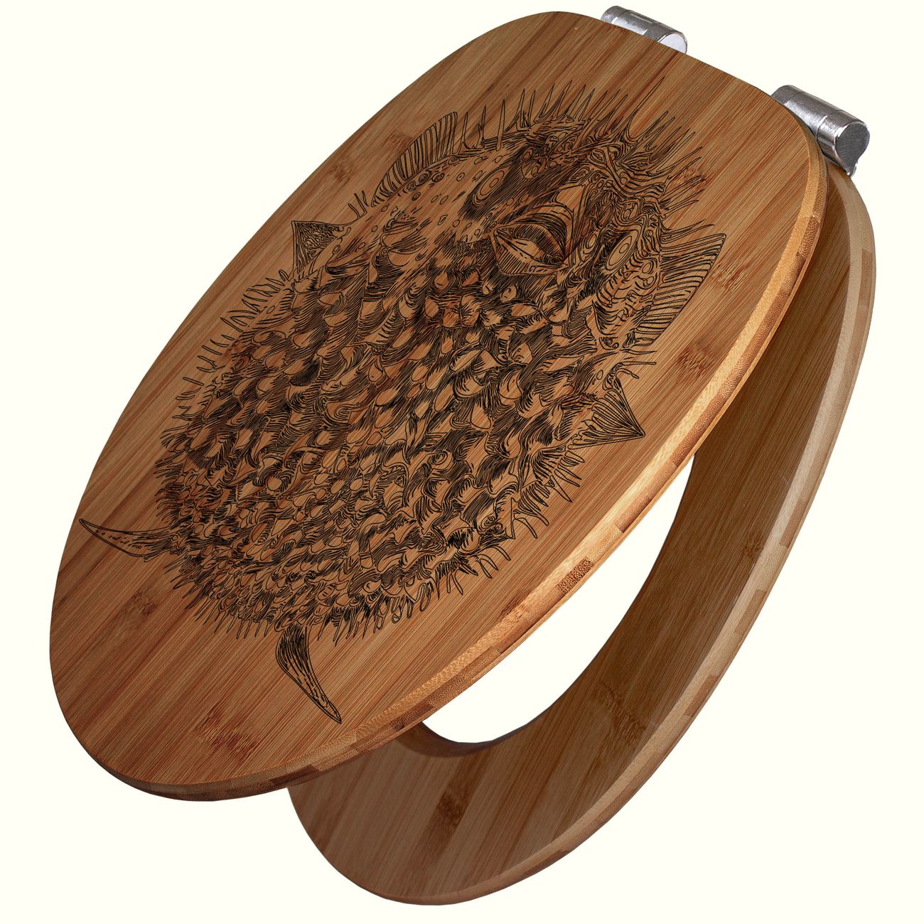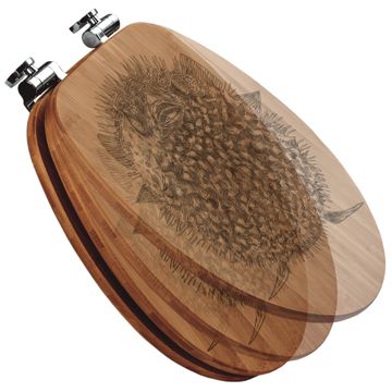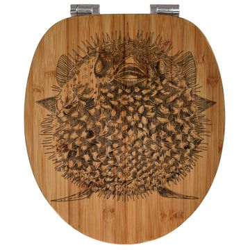 Design WC-Sitz Bambus Absenkautomatik Gravur Kugelfisch
