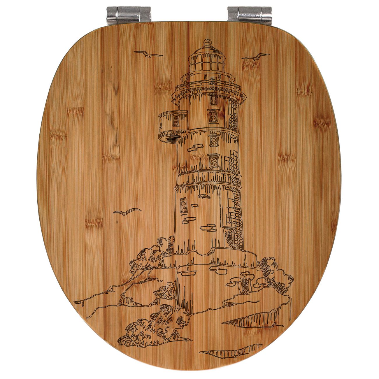 Design WC-Sitz Bambus Absenkautomatik Gravur Leuchtturm 1