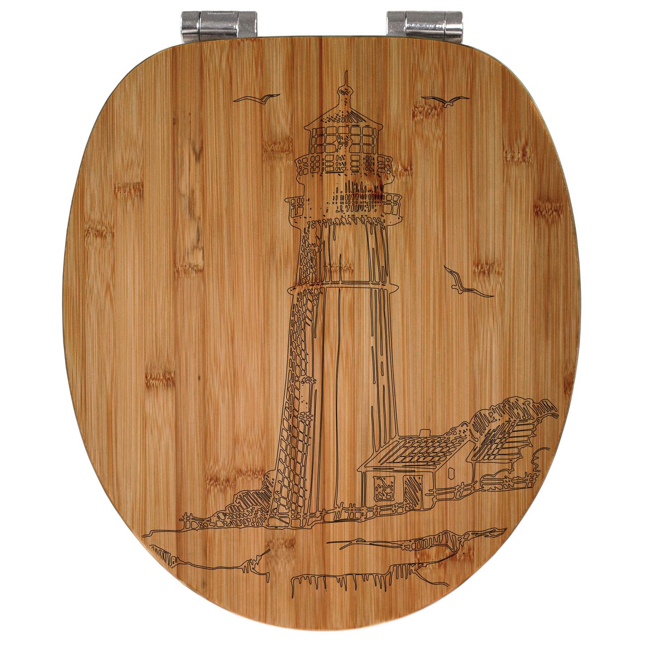 Design WC-Sitz Bambus Absenkautomatik Gravur Leuchtturm 4