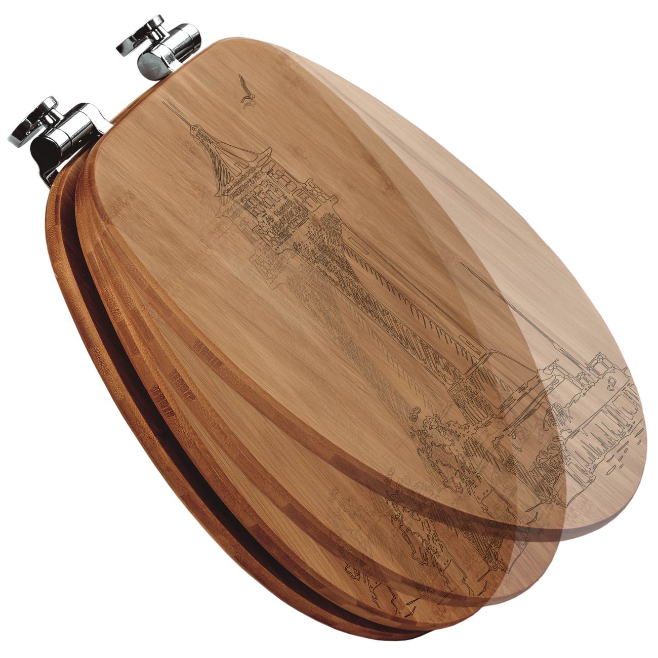 Design WC-Sitz Bambus Absenkautomatik Gravur Leuchtturm 5