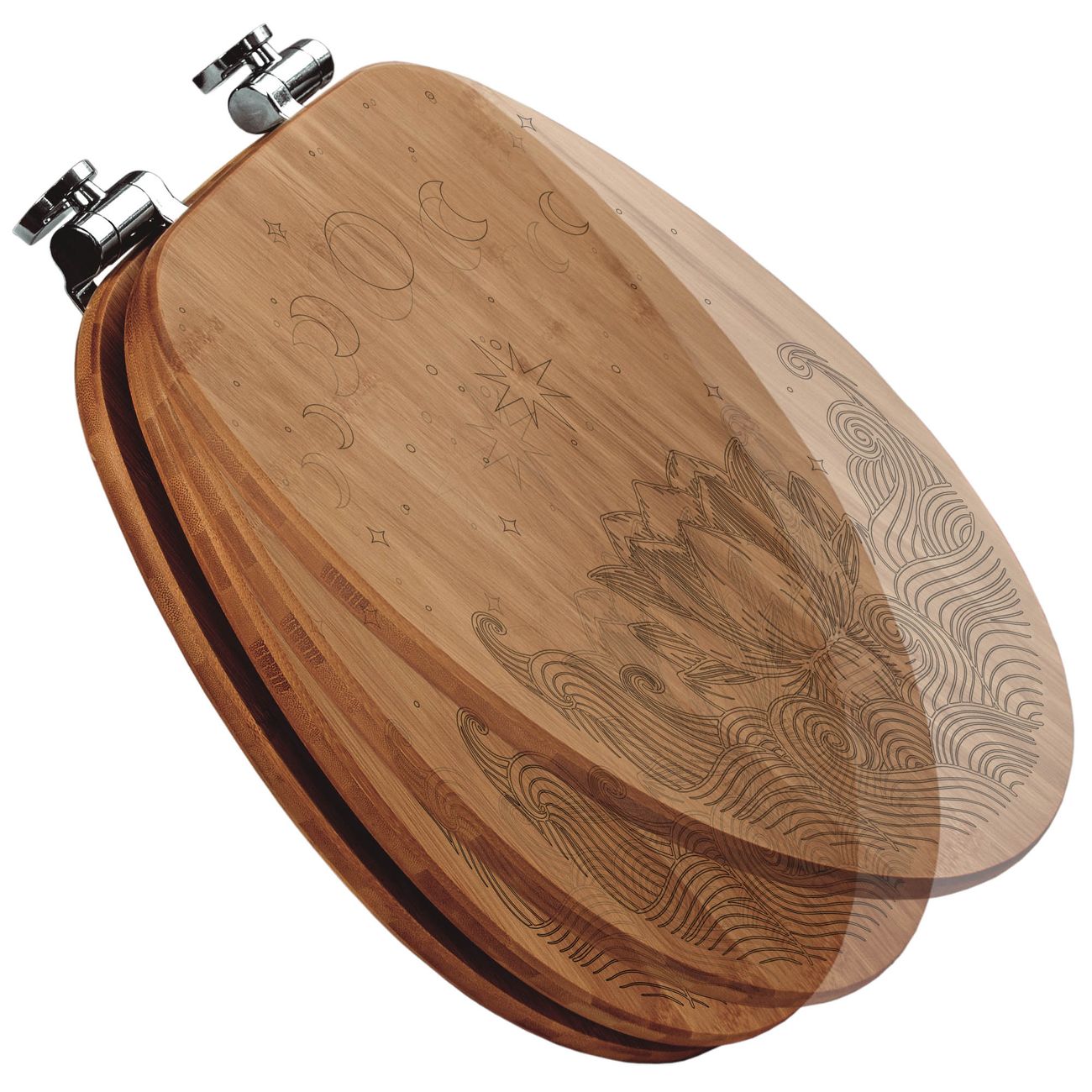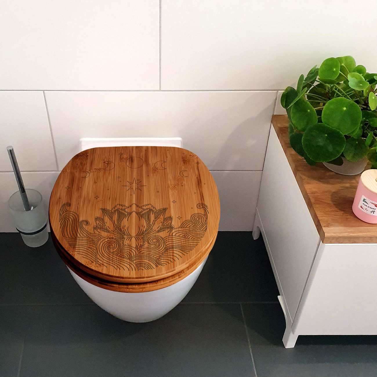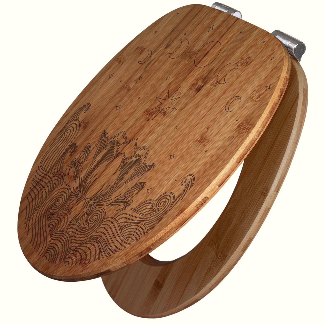 Design WC-Sitz Bambus Absenkautomatik Gravur Lotus und Mondphasen