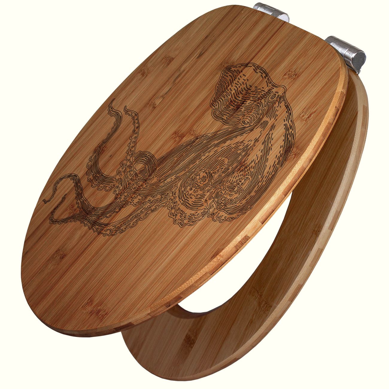 Design WC-Sitz Bambus Absenkautomatik Gravur Oktopus 1