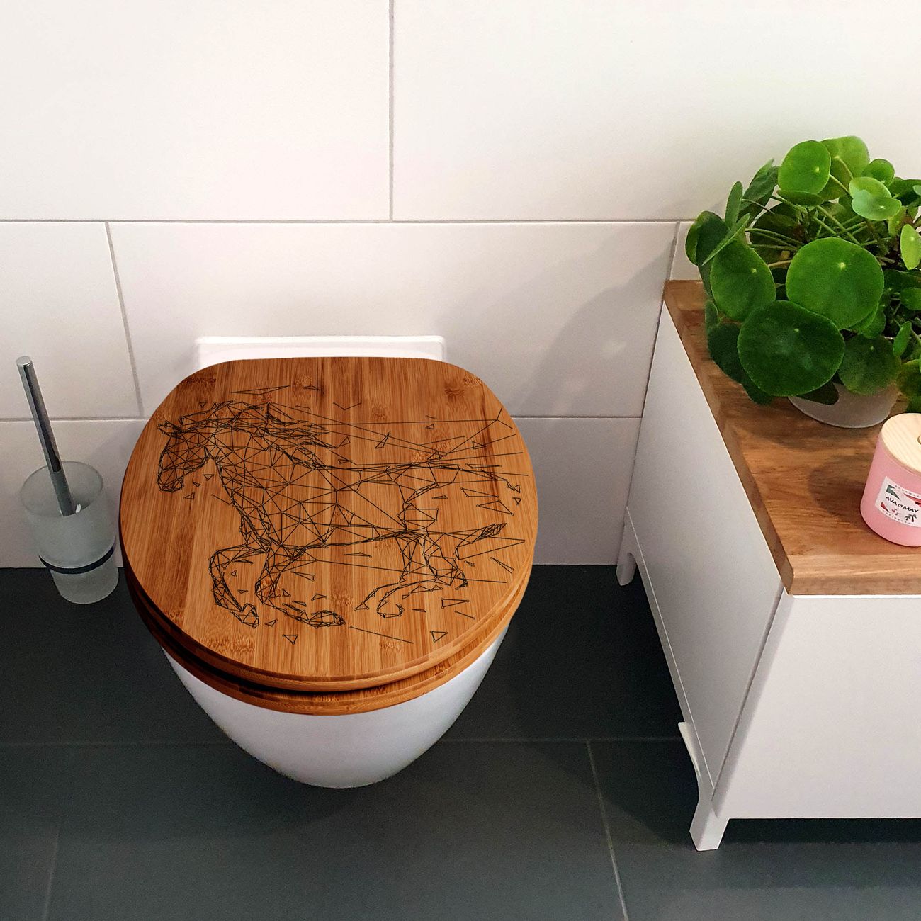 Design WC-Sitz Bambus Absenkautomatik Gravur Pferd abstrakt