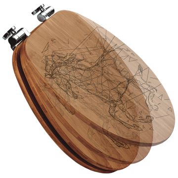 Mit dem banjado Toilettensitz in Bambus verbinden Sie Design und Funktionalität. Sie erhalten den WC-Sitz mit bewährter Holz Qualität und Universal Scharnieren. Das Motiv wird mit einem Laser in das Holz gebrannt. Durch die fein gelaserten Linien wird der WC-Sitz zu einem Blickfang in Ihrem Bad.