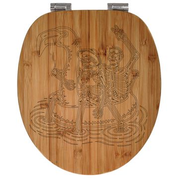 Design WC-Sitz Bambus Absenkautomatik Gravur Skeltte mit Flamingoschwimmring