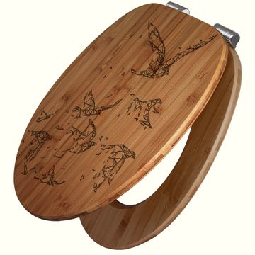 Design WC-Sitz Bambus Absenkautomatik Gravur Vögel abstrakt