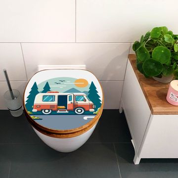 Mit dem banjado Toilettensitz in Bambus verbinden Sie Design und Funktionalität. Sie erhalten den WC-Sitz mit bewährter Holz Qualität und Universal Scharnieren. Das Motiv Motiv Abenteuer Reise besteht aus einer schutzlaminierten Motivfolie, die durch das Schutzlaminat zusätzlich vor Kratzern schützt. Durch diesen Motivdruck wird der WC-Sitz zu einem Blickfang in Ihrem Bad.