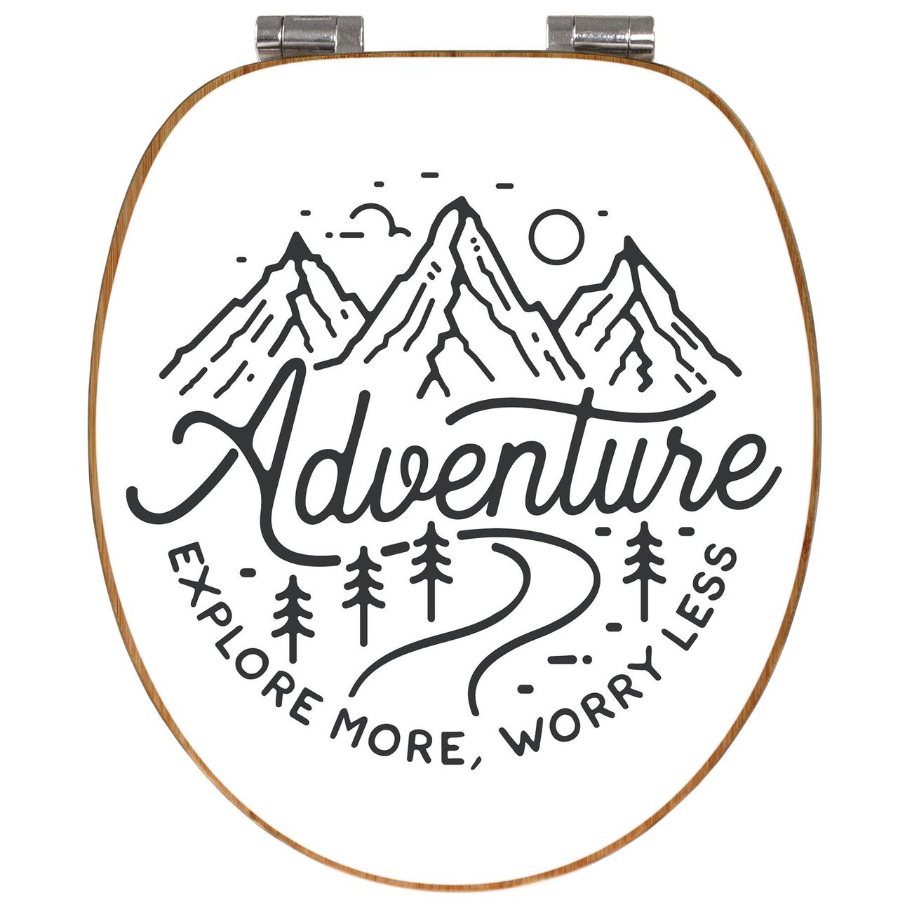 Mit dem banjado Toilettensitz in Bambus verbinden Sie Design und Funktionalität. Sie erhalten den WC-Sitz mit bewährter Holz Qualität und Universal Scharnieren. Das Motiv Motiv Abenteuerliche Bergskizze mit Spruch besteht aus einer schutzlaminierten Motivfolie, die durch das Schutzlaminat zusätzlich vor Kratzern schützt. Durch diesen Motivdruck wird der WC-Sitz zu einem Blickfang in Ihrem Bad.