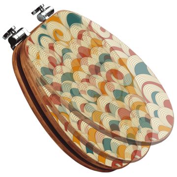 Mit dem banjado Toilettensitz in Bambus verbinden Sie Design und Funktionalität. Sie erhalten den WC-Sitz mit bewährter Holz Qualität und Universal Scharnieren. Das Motiv Motiv Abstract Waves besteht aus einer schutzlaminierten Motivfolie, die durch das Schutzlaminat zusätzlich vor Kratzern schützt. Durch diesen Motivdruck wird der WC-Sitz zu einem Blickfang in Ihrem Bad.