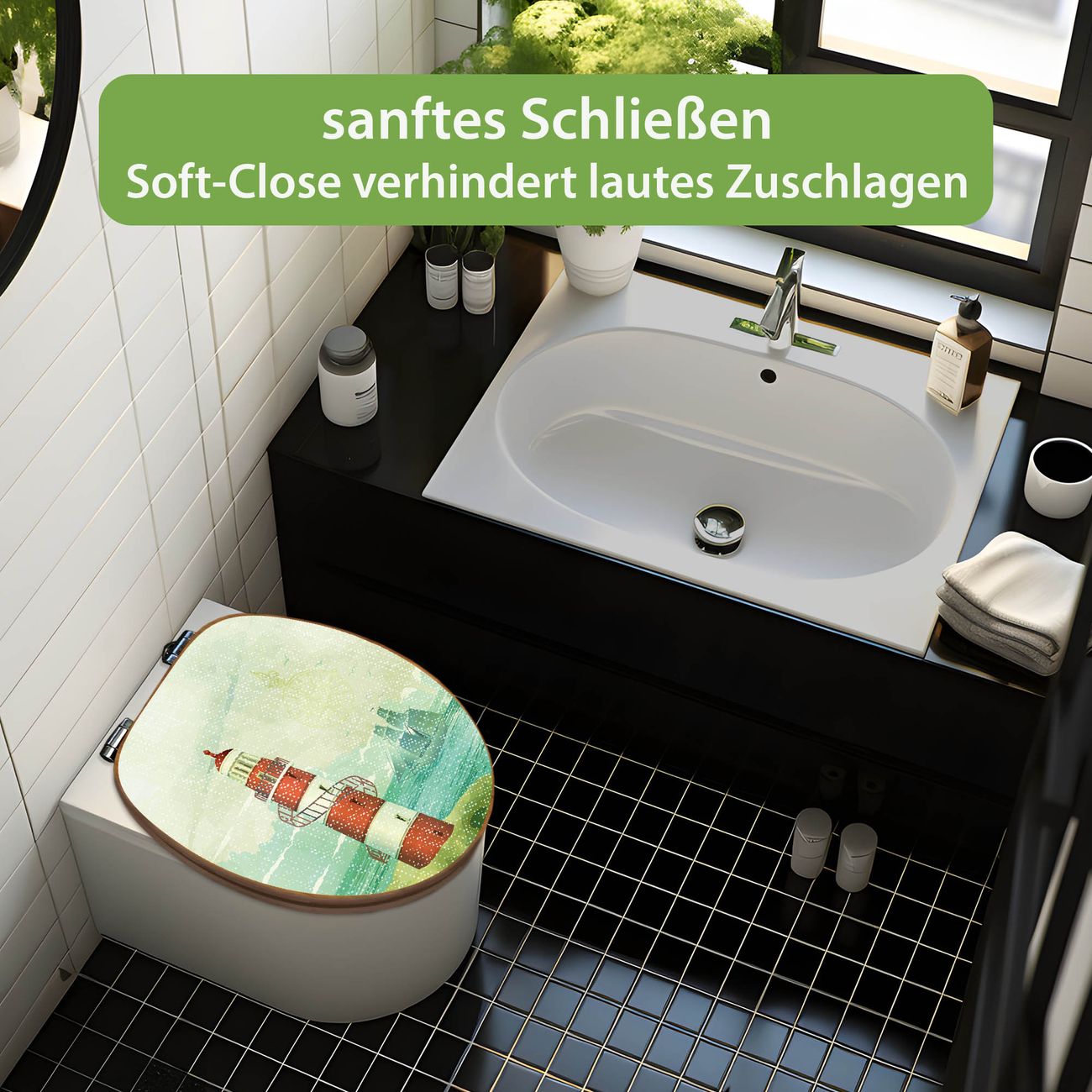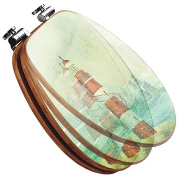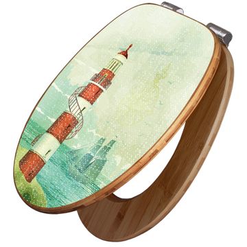 Design WC-Sitz Bambus Absenkautomatik Motiv Alter Leuchtturm